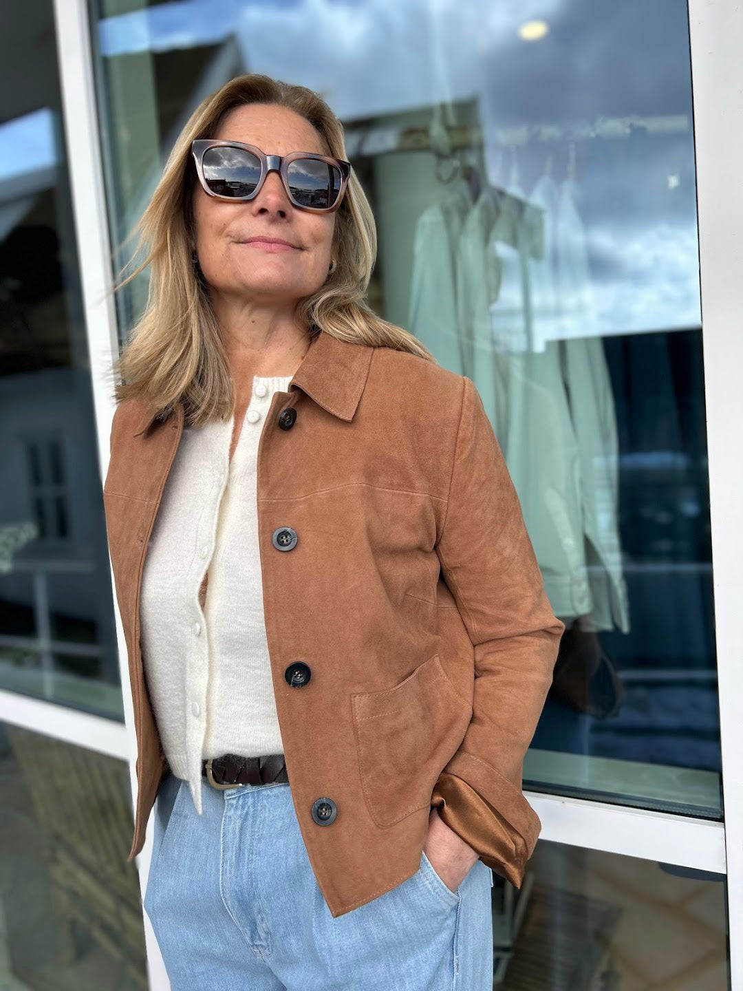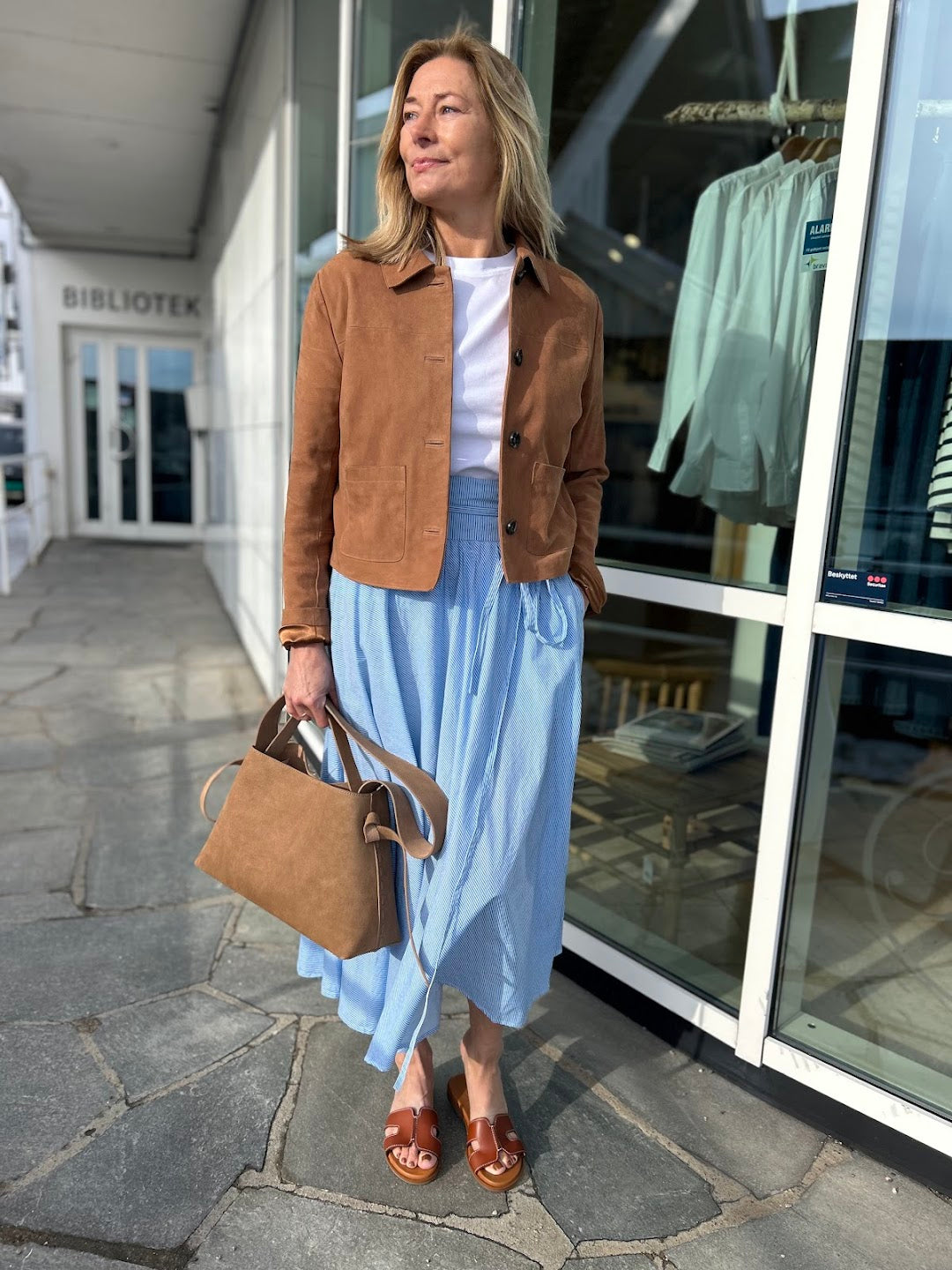Dette er en trend vi vil se mer og mer av! Vi elsker skinnjakka Bettina har på. Klassisk og casual skinnjakke som går til alt og som vi kommer til å bruke masse framover.