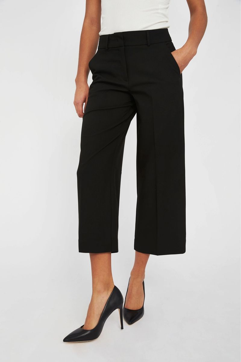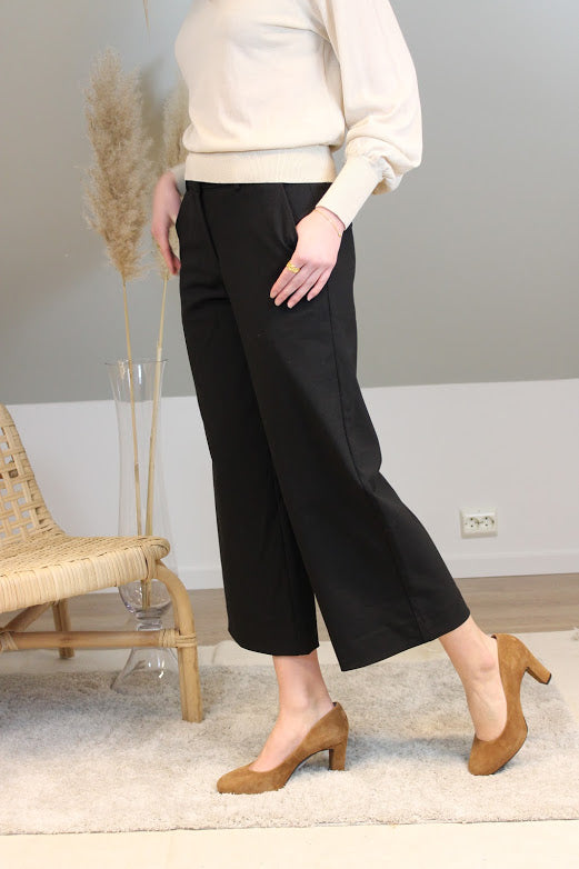 Dena 285 er en klassisk sofistikert bukse med en trendy "cropped" lengde med vide bein. Buksen har skrå lommer i siden. Buksen har en flott fasong, hvor den sitter litt over rumpa og løsere i beina.