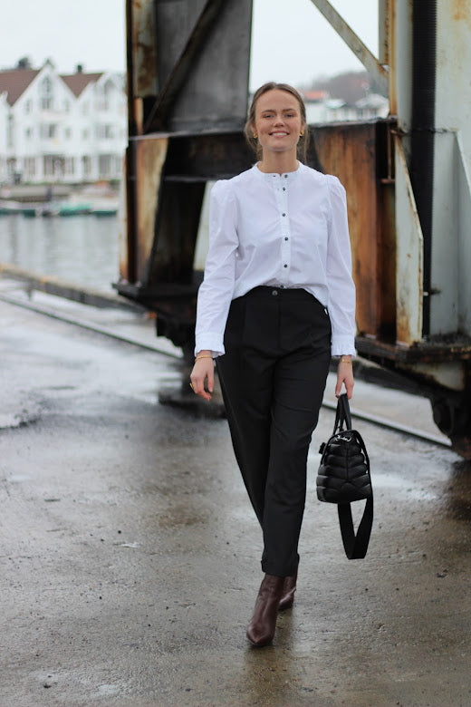 Kuleste buksa fra Five Units. Malou har kule legg foran på buksa, er litt videre oppe rundt livet og lårene og smalner ned mot ankelen. Malou er god på størrelse og her kan du bestemme selv hvordan du vil den skal sitte. Vil du ha den høy på livet? Gå gjerne ned en størrelse. Liker du den litt løsere og avslappet kan du gå opp en størrelse.