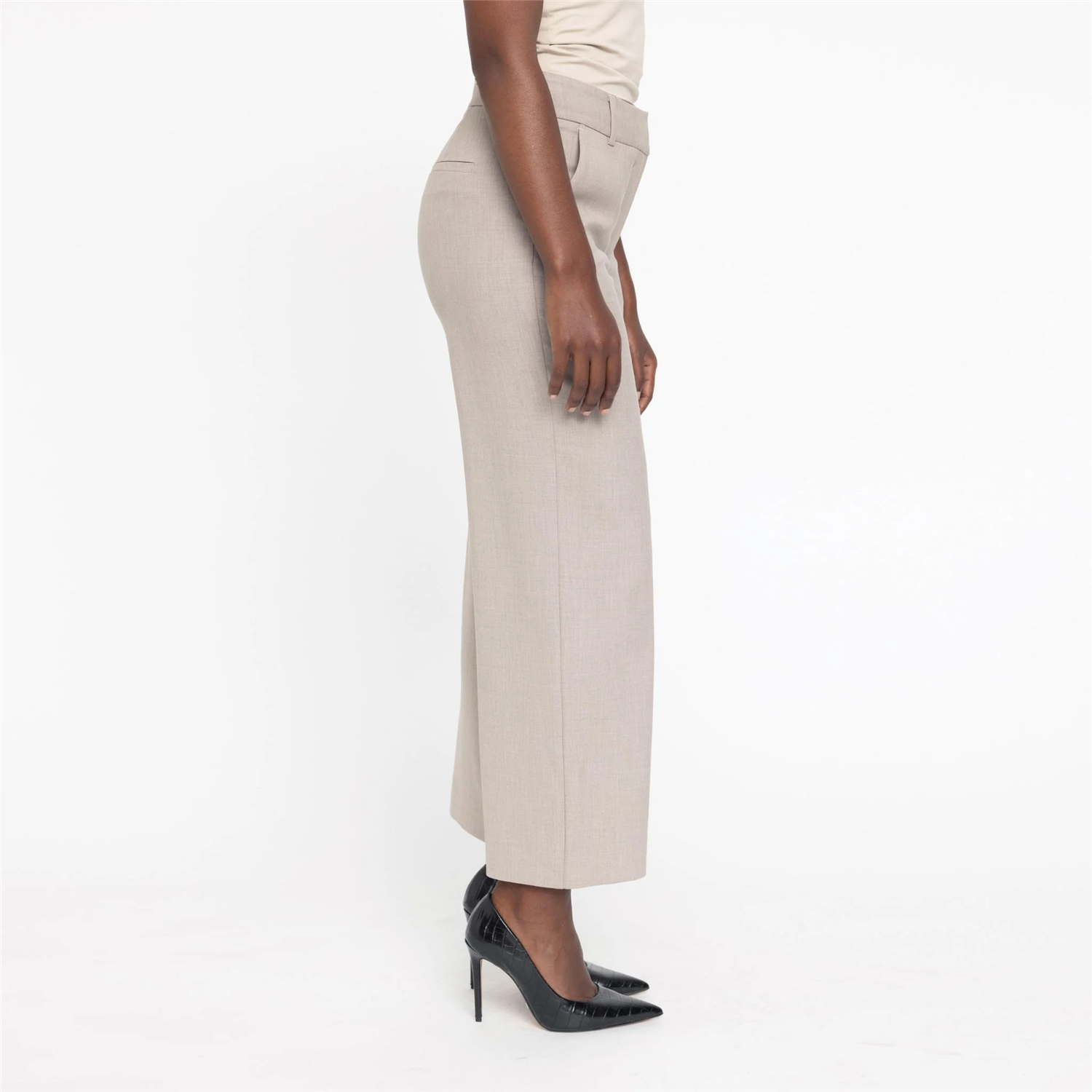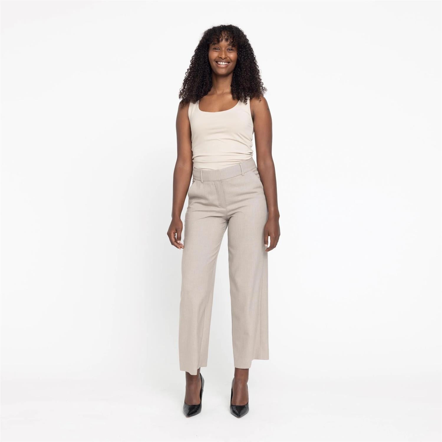 En superfin bukse fra Five Units. Denne dressbuksen har vide, rette ankelkorte ben. Buksen er medium høy i livet, stikklommer i siden og jukselommer bak.