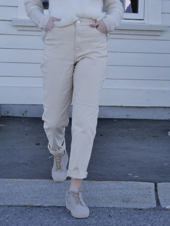 Tøff jeans med høyt liv og avslappet passform. Buksen lukkes med knapp og glidelås og har rette bein.