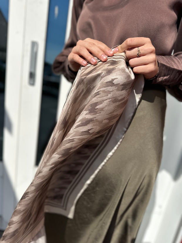 Et delikat sjal i silke som passer perfekt i halsen eller håret, enten til en slikebluse eller en lekker kasjmirgenser.