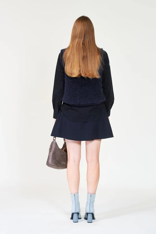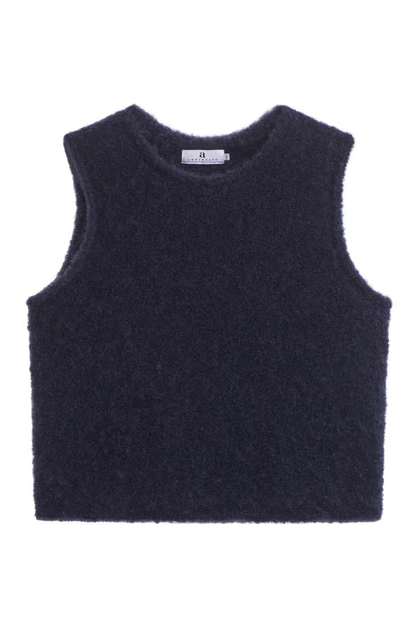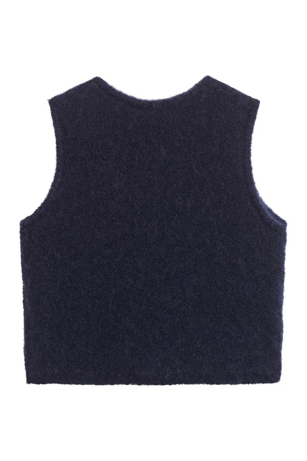 Varm og taktil vest med boucle-lignende struktur i kompakt ullkvalitet. Den rette passformen gjør den enkel å kombinere med skjorter eller kjoler for et stilsikkert lag-på-lag-antrekk.