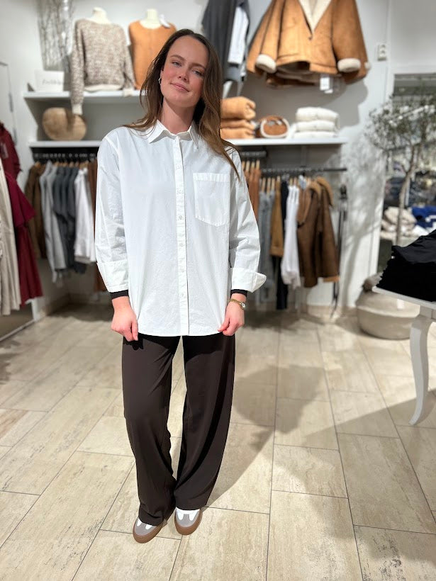 En tidløs og klassisk skjorte i myk oxford bomull. Oversized fasong. Brede mansjetter rundt håndledd. Knepping hele veien i fronten. Kan styles til både hverdag,fest og som koseplagg, så er er mulighetene uendelige.
