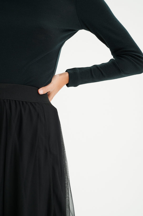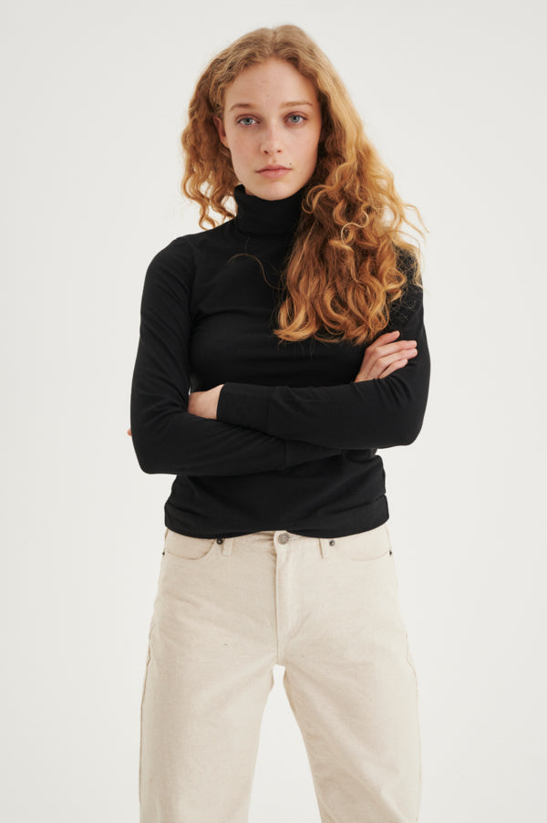 En nydelig basictopp i ull fra InWear. Den er i en tynn, myk ullkvalitet med god stretch. Høy hals og figurnær passform. Den er kjempefin å ha under ullgensere, og inni blazer eller cardigans.