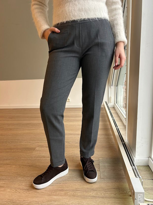 Stilige og klassiske dressbukser! Stor bred strikk i livet og stretchy, mykt stoff gir ultimat komfort. Buksen har en dekorativ søm langs siden og oppbrett nederst. Praktiske stikklommer.