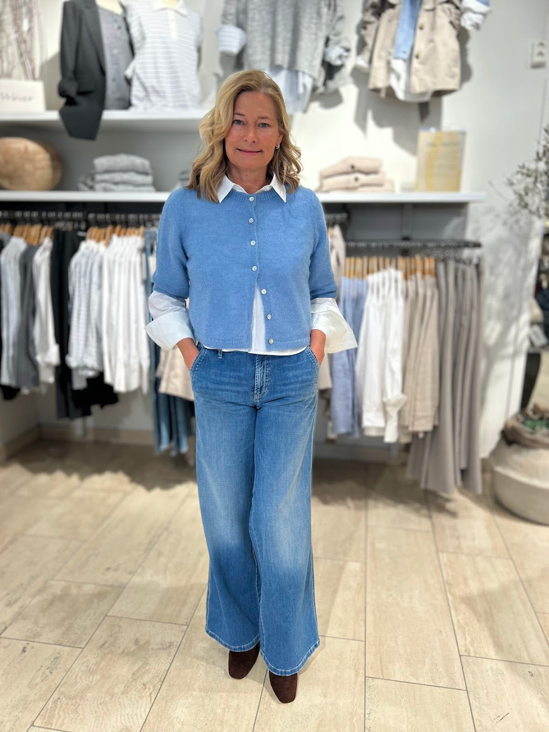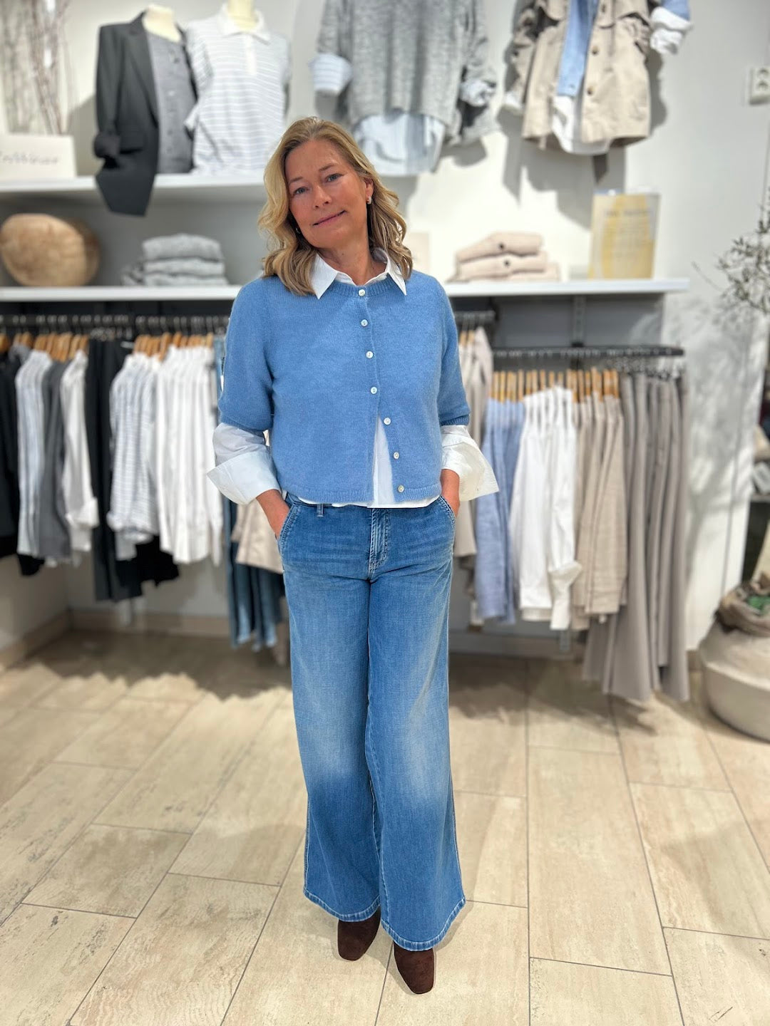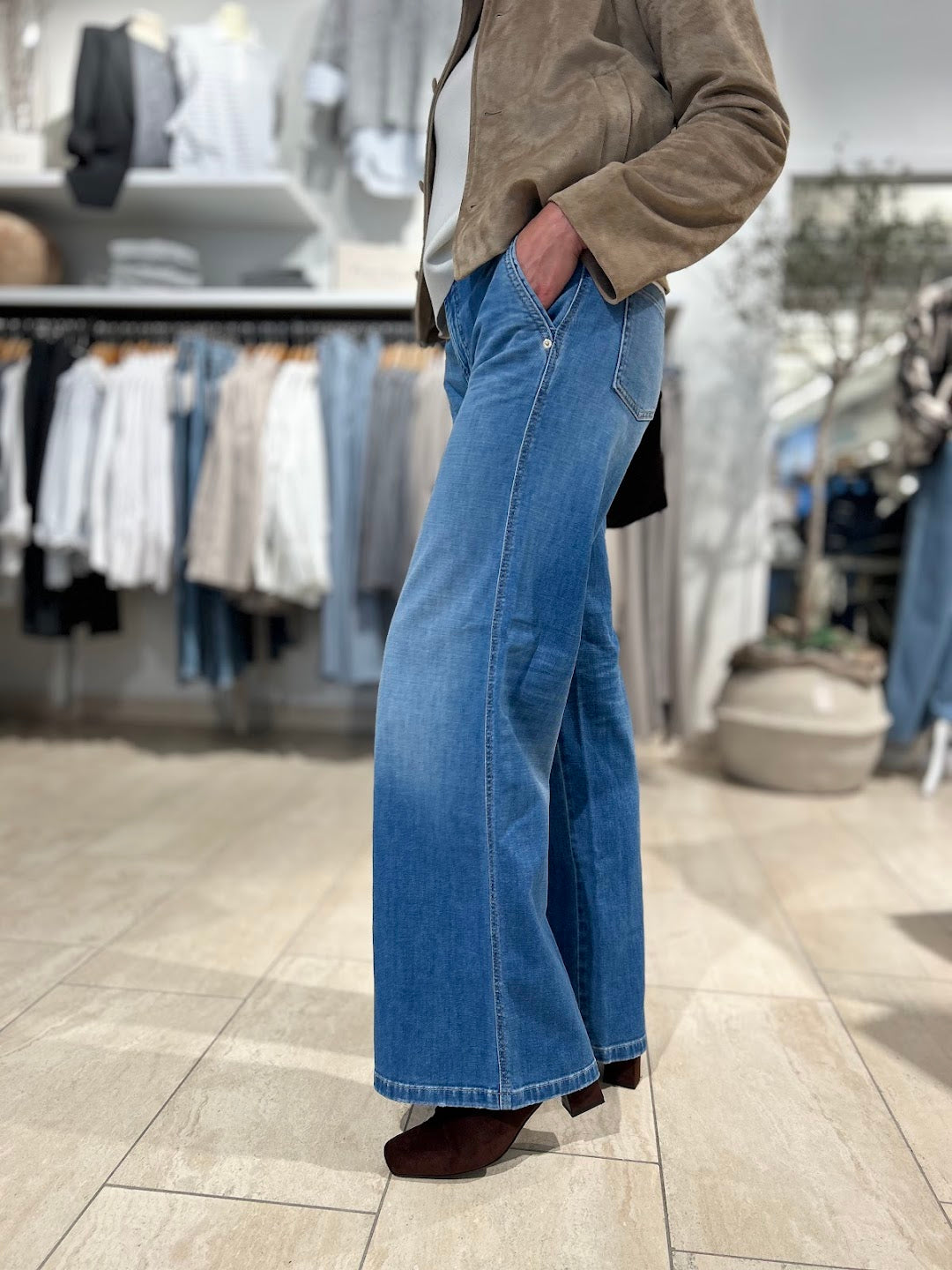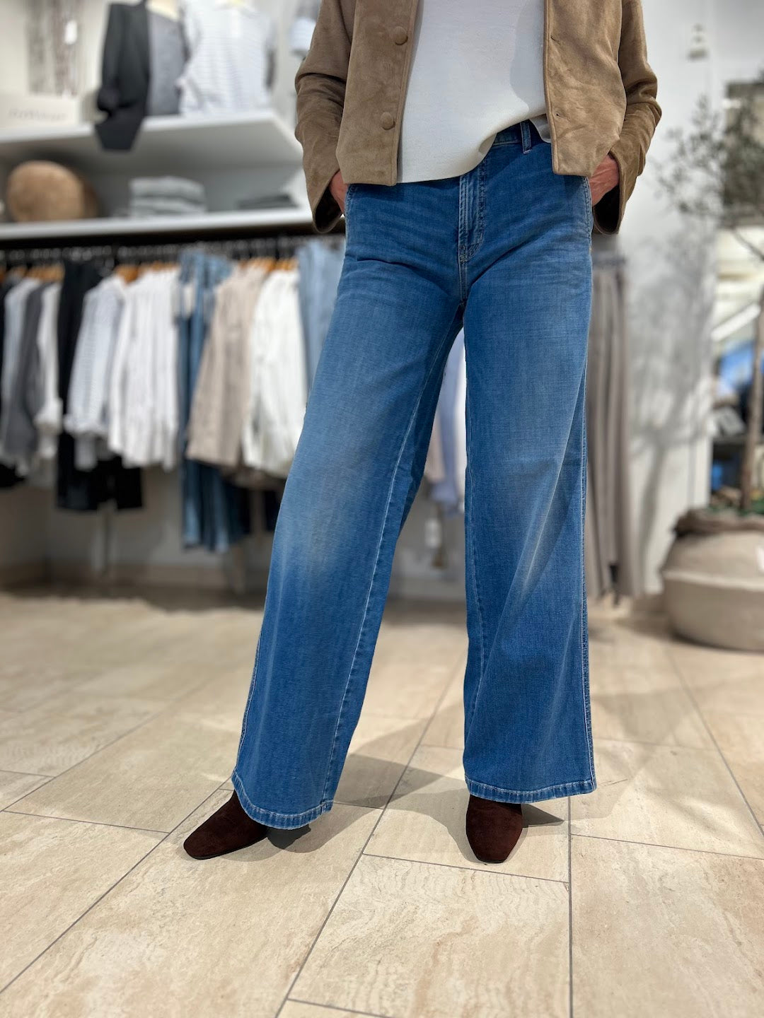 Utrolige gode jeans! Som vanlig er Cambio suveren på passform og denne jeansen er super behagelig, sitter som støpt, flatterende og perfekt medium livhøyde. Lange vide ben. Buksen har lommer bak og fine stikklommer i sidene.