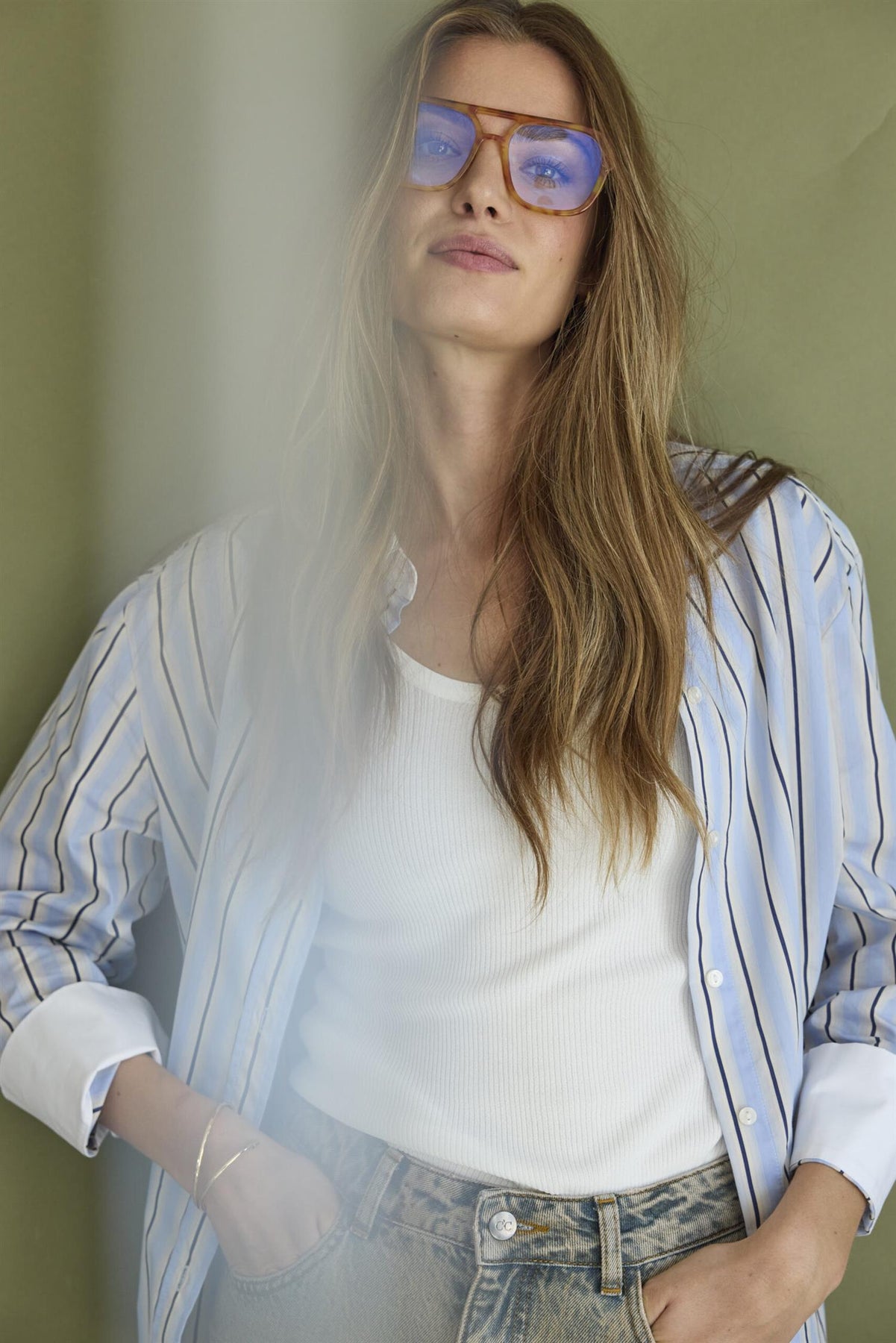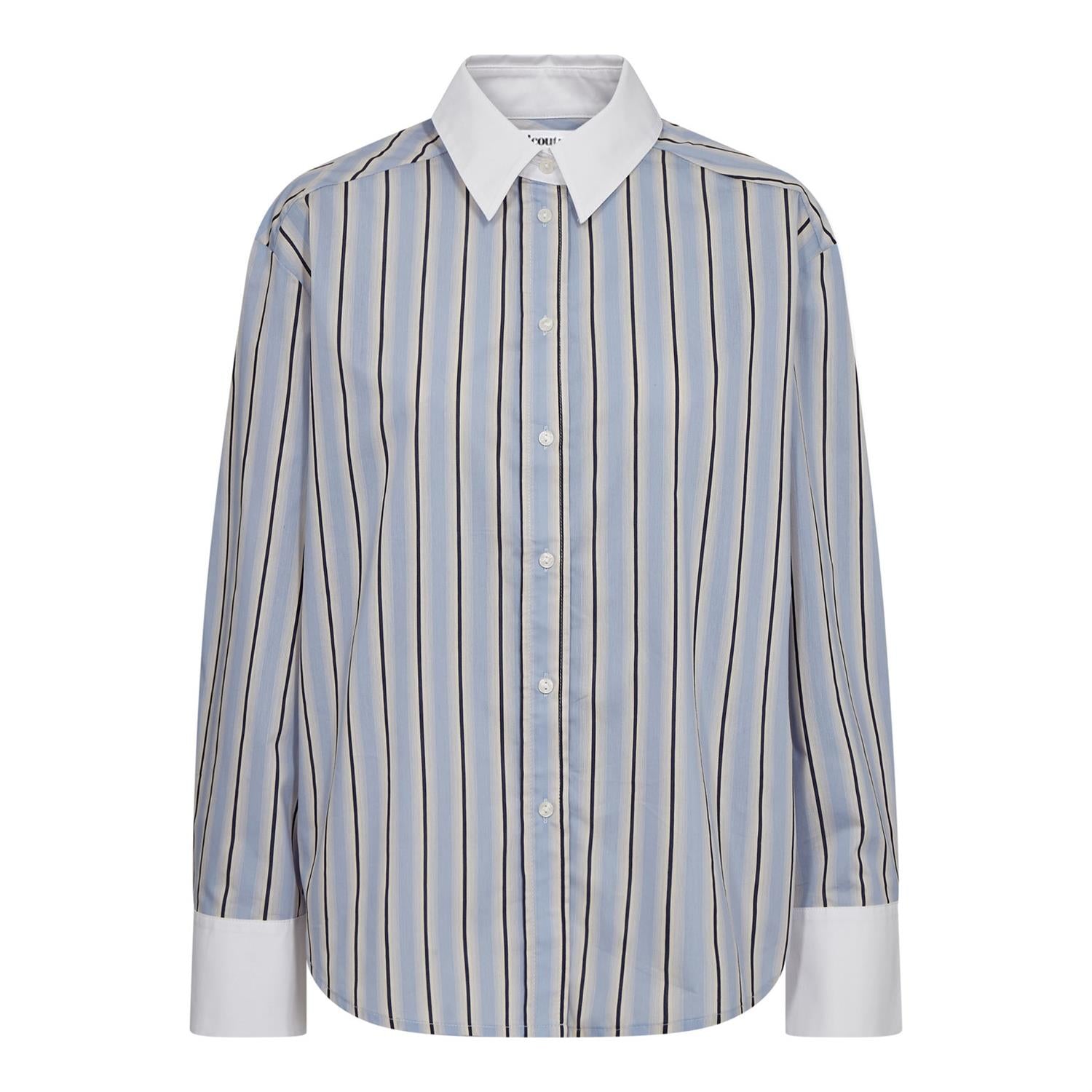 Så kul storskjorte med striper. Kragen og mansjettene er i hvit kontrast som gir skjorten det lille ekstra! Perfekt hverdags staple du alltid føler deg fresh i.