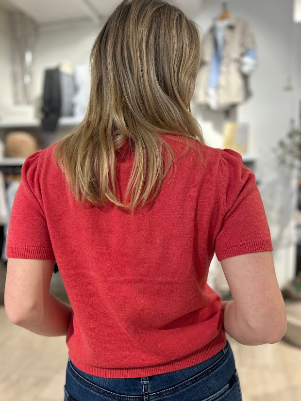 Veldig pen t-skjorte i en lett strikket kvalitet. Den har ribbestrikkede partier og enkel detalj på skulderen. Veldig fin til penere anledninger, skjørt osv, men også supert til hverdags og under en blazer. Anvendelig baseplagg til din garderobe.