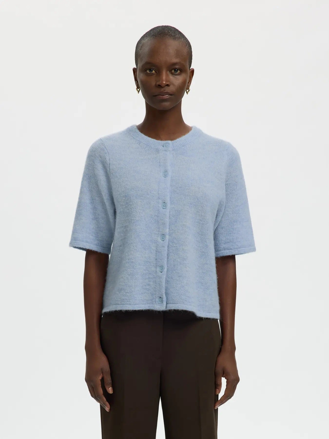 Superfin strikk med korte ermer fra Selected femme. Denne strikken er laget i samme gode Lulu kvalitet som vi kjenner så godt fra tidligere. En myk og god kvalitet som holder seg godt til en fin pris. Toppen har knapper i front, og kan fint brukes både åpen og lukket.