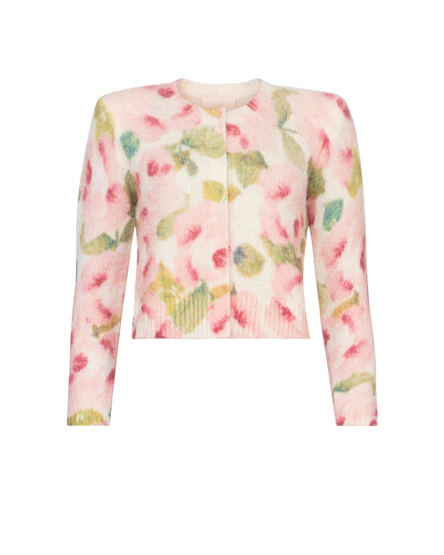 Hairy Knit Jacket fra ByTimo er en feminin strikkejakke med et tidløst og elegant uttrykk. Den kommer i en offwhite base dekorert med fine blomstermønstre i rosa og grønt, som gir et lett og friskt inntrykk. Jakken har rund hals, lange ermer og ribbestrikkede avslutninger som gir et helhetlig og klassisk design. Den korte passformen gjør den lett å kombinere – bruk den til jeans for en avslappet stil, eller over kjoler for et mer pyntet antrekk.