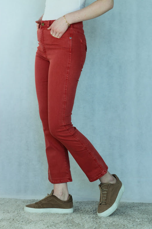Malena har høyt liv, sitter godt over rompe og lår, og får rette ben fra knærne og ned til ankelen. Malena har i utgangspunktet ankellengde, men den er like kul enten du er lav eller høy. Buksa er fin som cropped og lang!