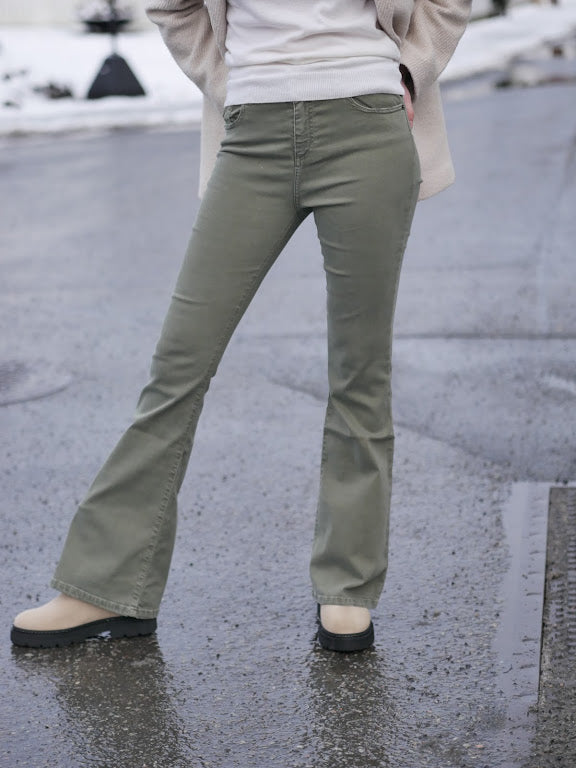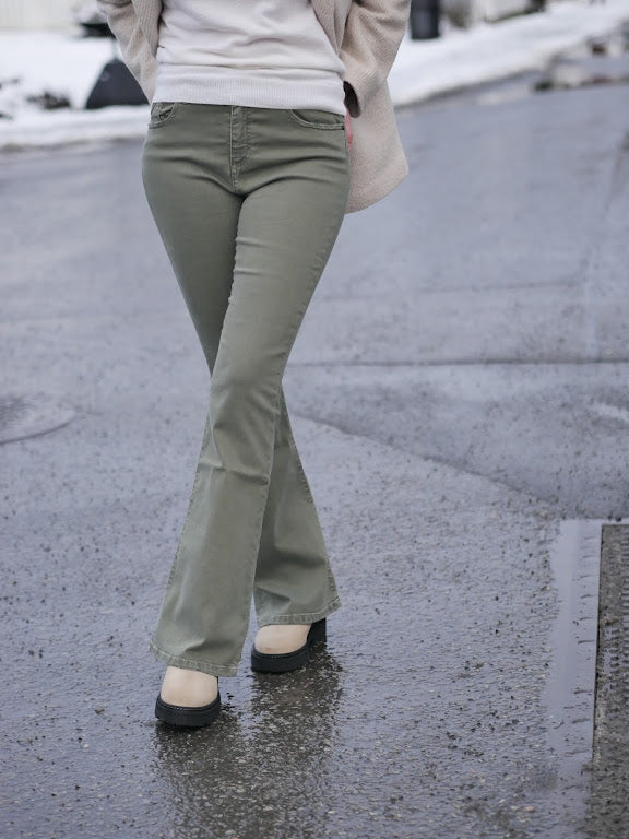 Raval er en av Lois best solgte modeller, den perfekte 70-talls slengbuksen. Medium høy på livet med sleng fra knærne. 5 lommer, glidelås og knepping i front. Kommer i Megalia shot kvaliteten, en stretchy, lett og behagelig kvalitet som holder godt på fasongen.