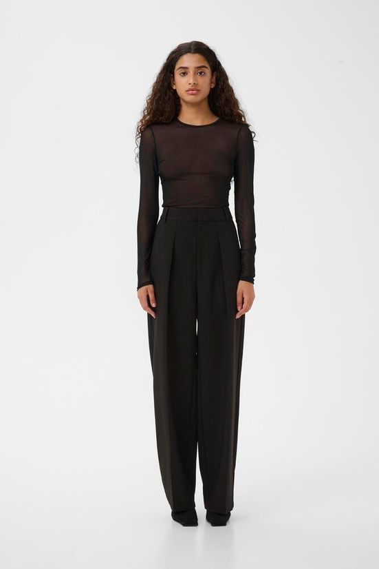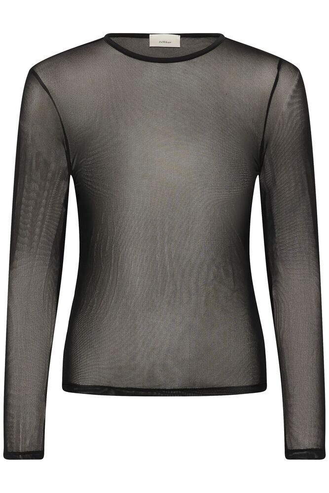 En elegant og lett topp i transparent materiale, perfekt for lag-på-lag. Den enkle silhuetten gjør den allsidig – bruk den under en svart blazer for et sofistikert og moderne uttrykk.