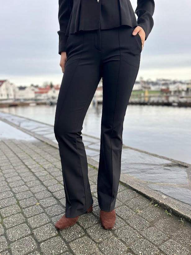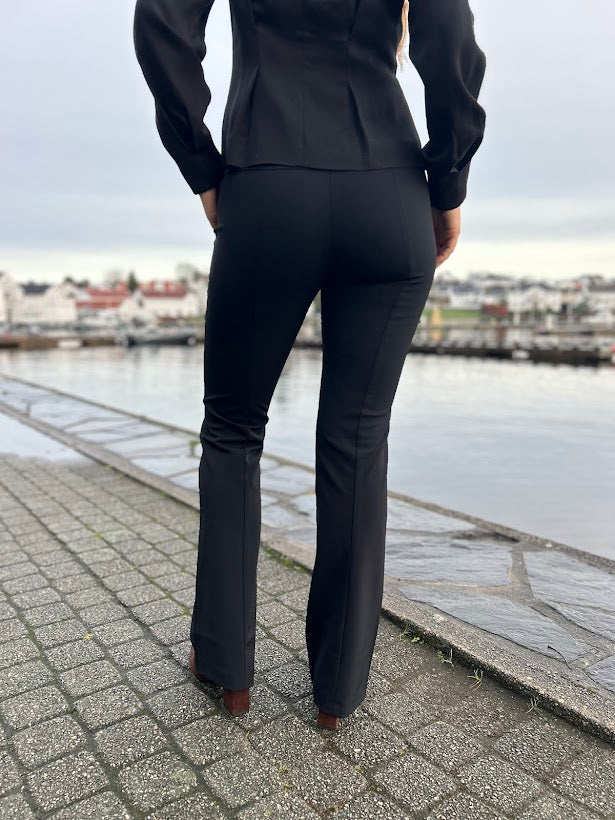 Wow, for en bukse fra Cambio! Sitter godt over hofte og rompe, og går ut i en perfekt sleng fra knærne. Superbehagelig og fantastisk flatterende passform. Perfekt medium livhøyde. Myk og pen kvalitet, perfekt til fest eller når du sitter på en kontorstol.