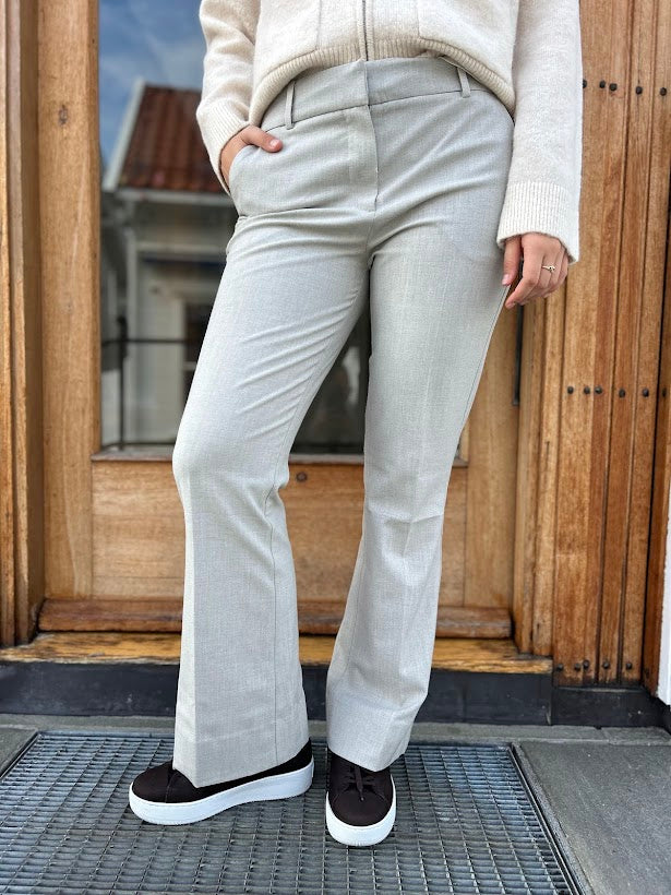 Klassiske Clara buksen som vi elsker. En vakker og feminin buksemodell, med et stilrent snitt. Den sitter medium høyt i livet, stramt over hofter og lår, og går ut i en lang sleng. Kul til hverdags med sneakers, eller til pent med hæler. Behagelig stretchy materiale, disse er både komfortable og stilige.