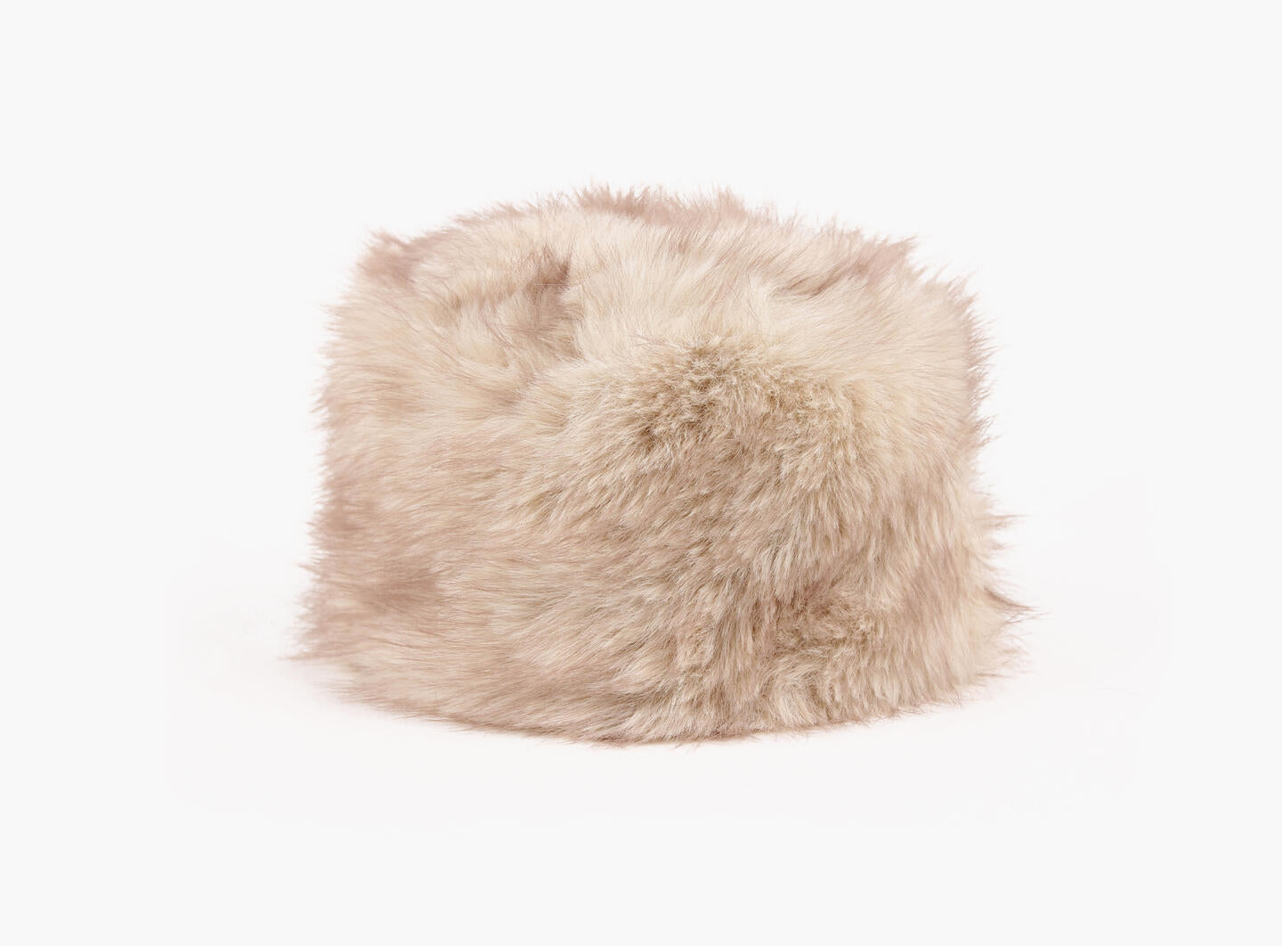 Trendy lue i myk fuskepels. Varm, stilsikker og dyrevennlig.