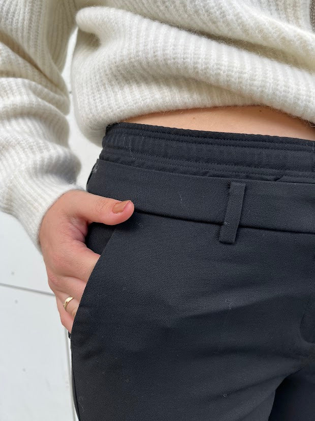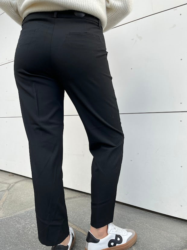 Kul og komfortabel dressbukse. Buksen har et komfortabelt liv med bred linning og beltehemper. Knyting foran, gir en sporty look. Den har ankellange, rette ben.