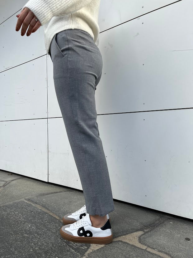 Vår bestselger fra Cambio, Krystal i høstens farge! Vi elsker denne alsidige, stilige og komfortable dressbuksen. Den har medium høyt liv, med skjult luking, beltehemper og stikklommer. Ankellengde, rette ben.