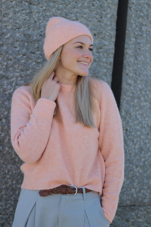 Genseren har rund hals og er kort i modellen som også gjør den fin til skjørt og høytlivsbukser. Eller over en skjorte.
