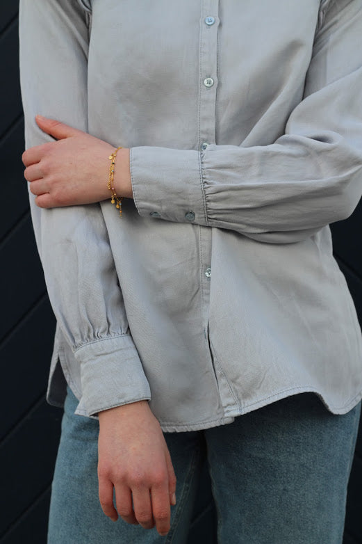 Viskose og lin kvaliteten gjør blusen lett og god å ha på. Blusen er litt 'tung' i stoffet som gjør at den faller fint og ikke er gjennomsiktig.