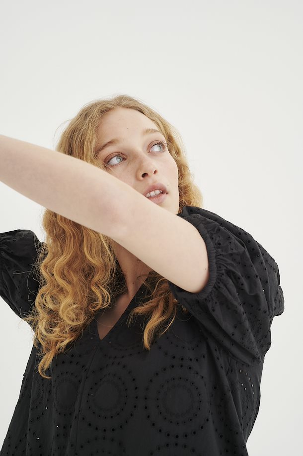 Blondebluse fra InWear. V-hals og korte ermer med volum. Blusen har en A-fasong.