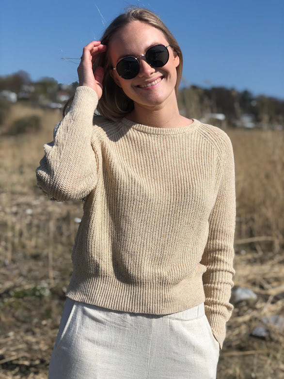 Genser fra InWear i en deilig bomull/lin kvalitet. Genseren har en normal passform, rund hals og raglan ermer.