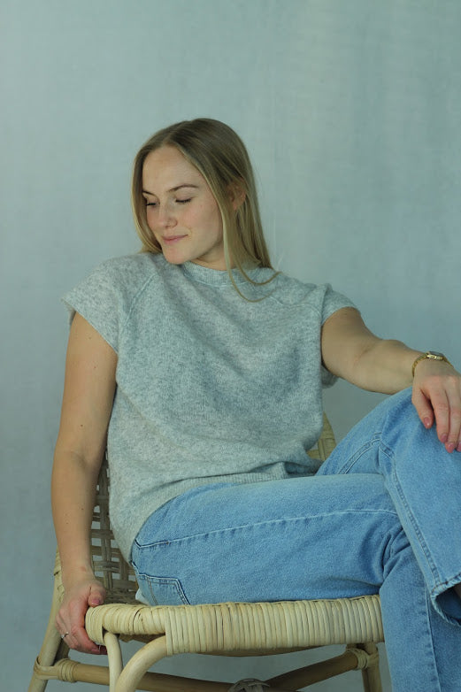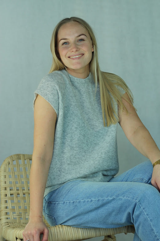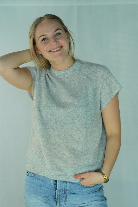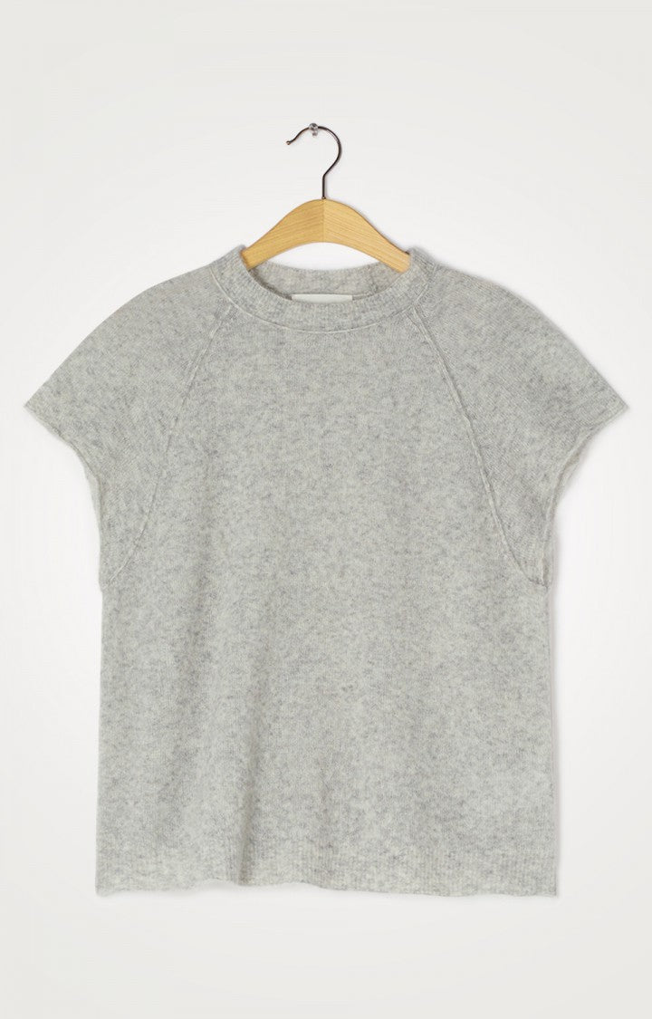 En myk å god kort-ermet strikk fra American Vintage. Den har en rund tett hals med ribb og en "røff" søm ved ermene. Den har en løs og ledig fasong og passer perfekt med en skjorte eller en pologenser inni.