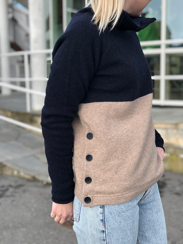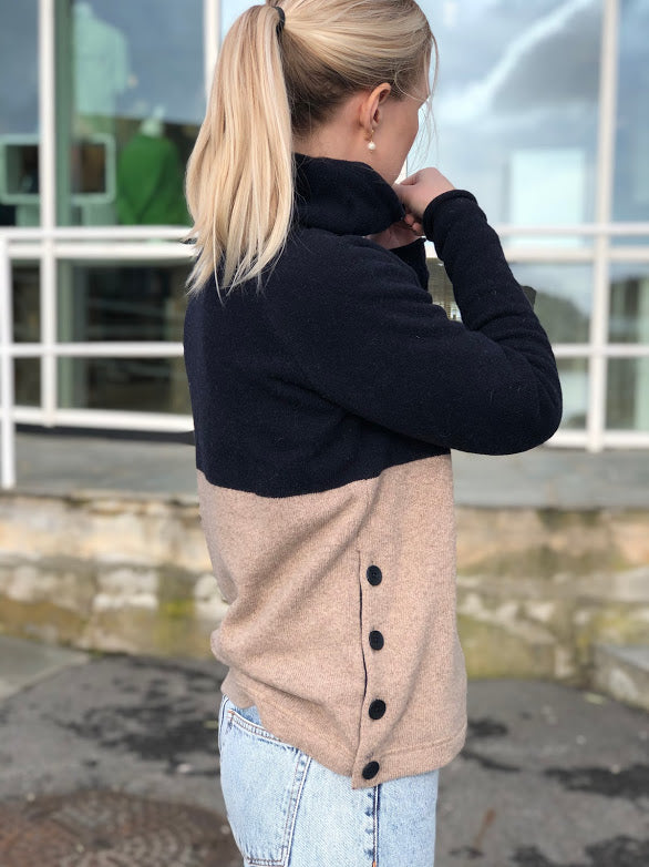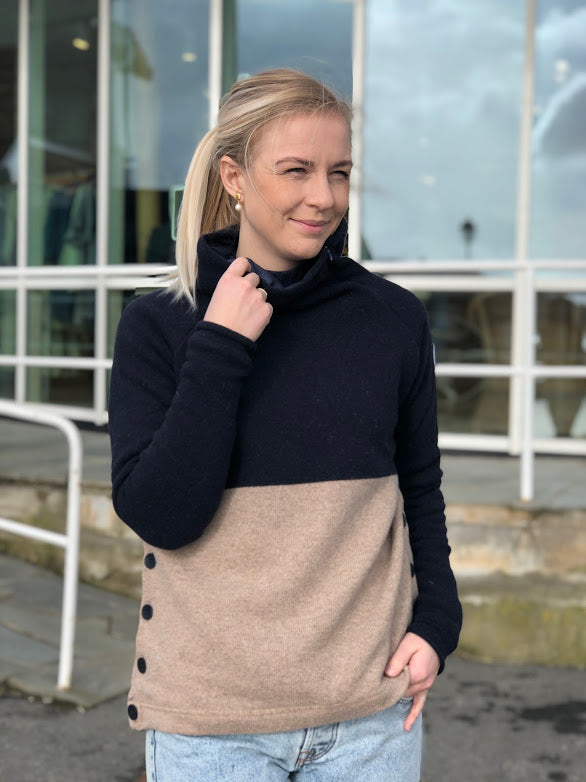 Høy, løs krage med glidelås