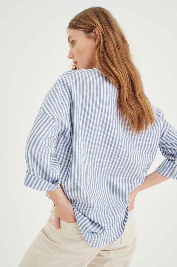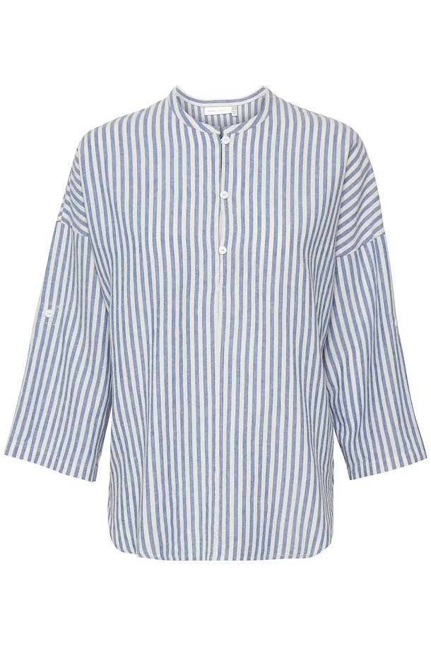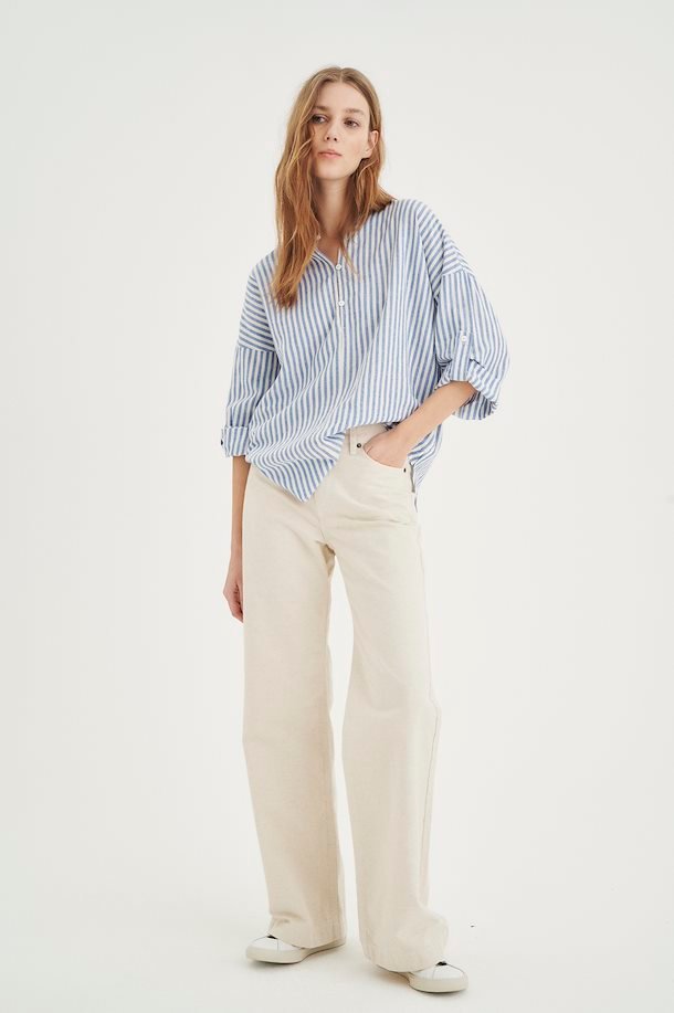 En superskjønn sommerbluse fra InWear. Den har en løs og ledig fasong, oppbrett erm og knapper i front.