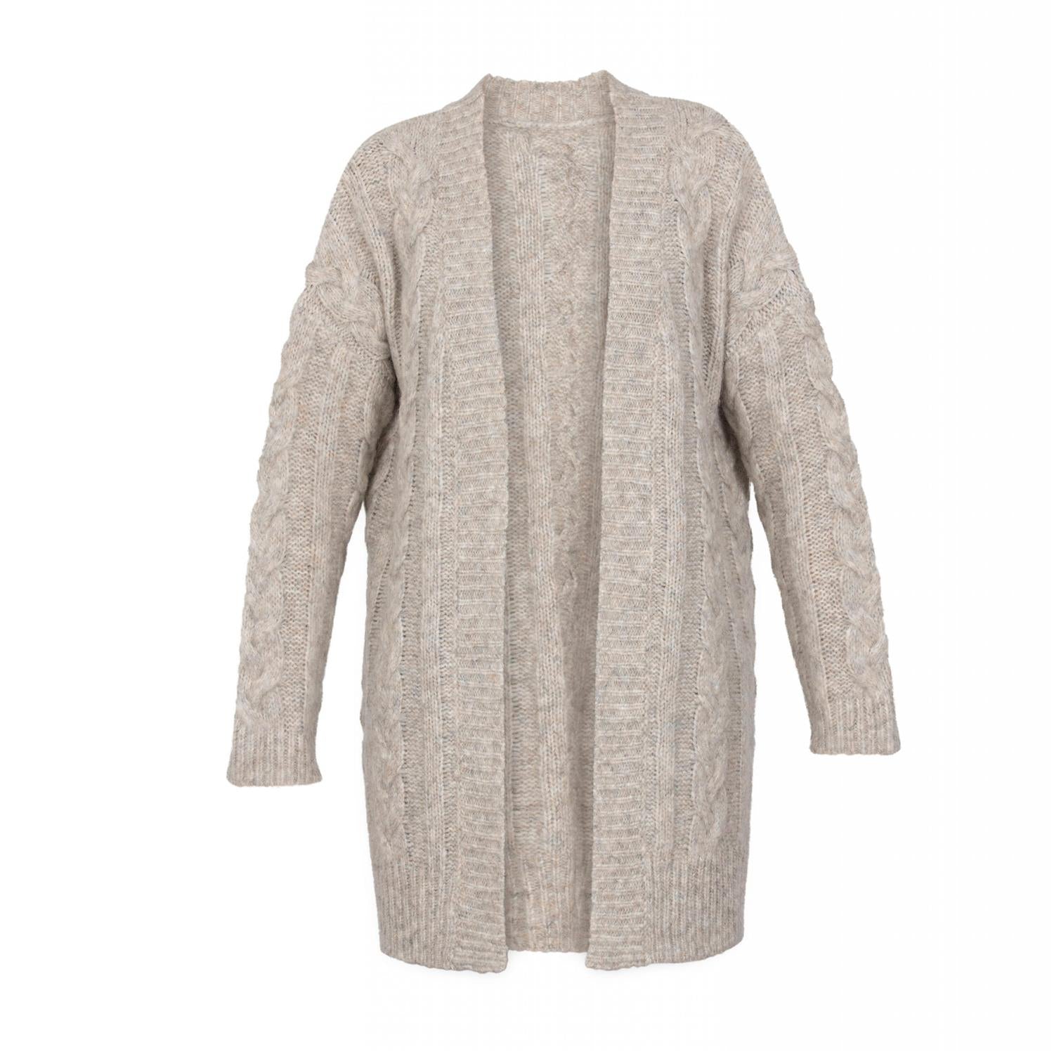 En herlig, lang kabelstrikket cardigan fra Blue sportswear.