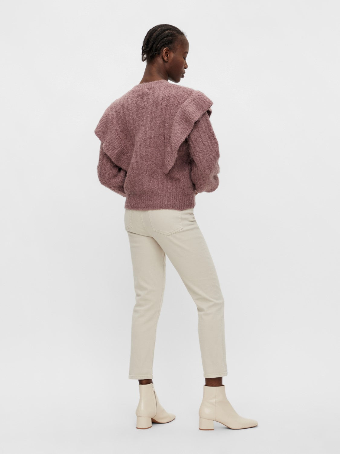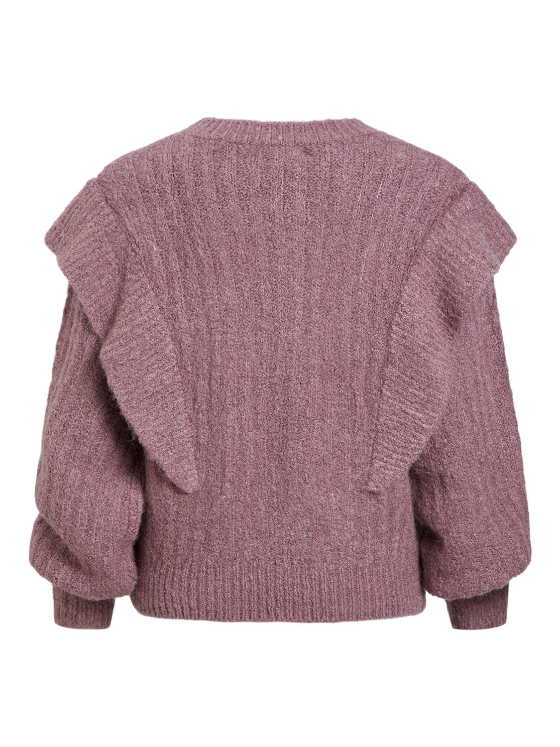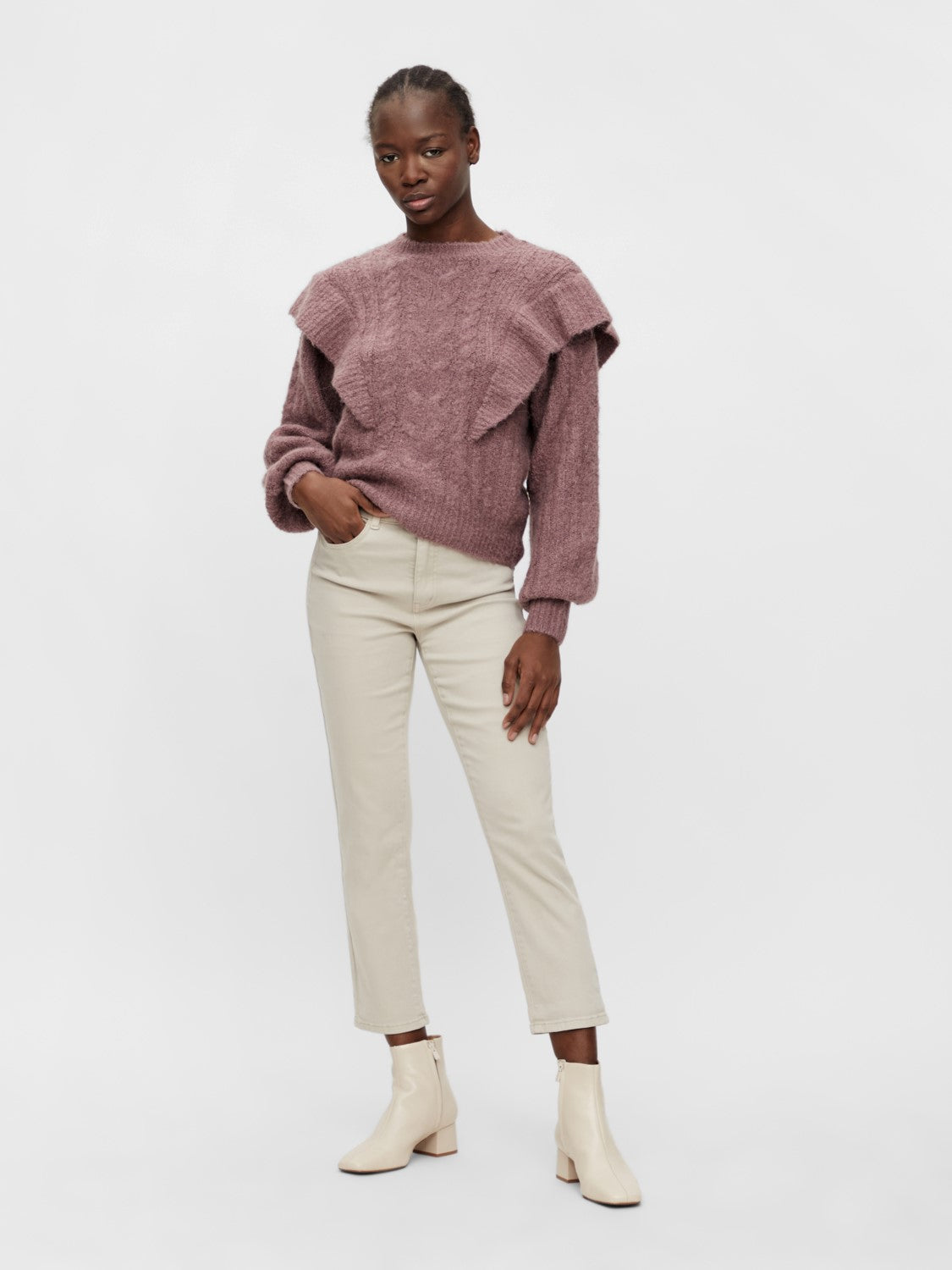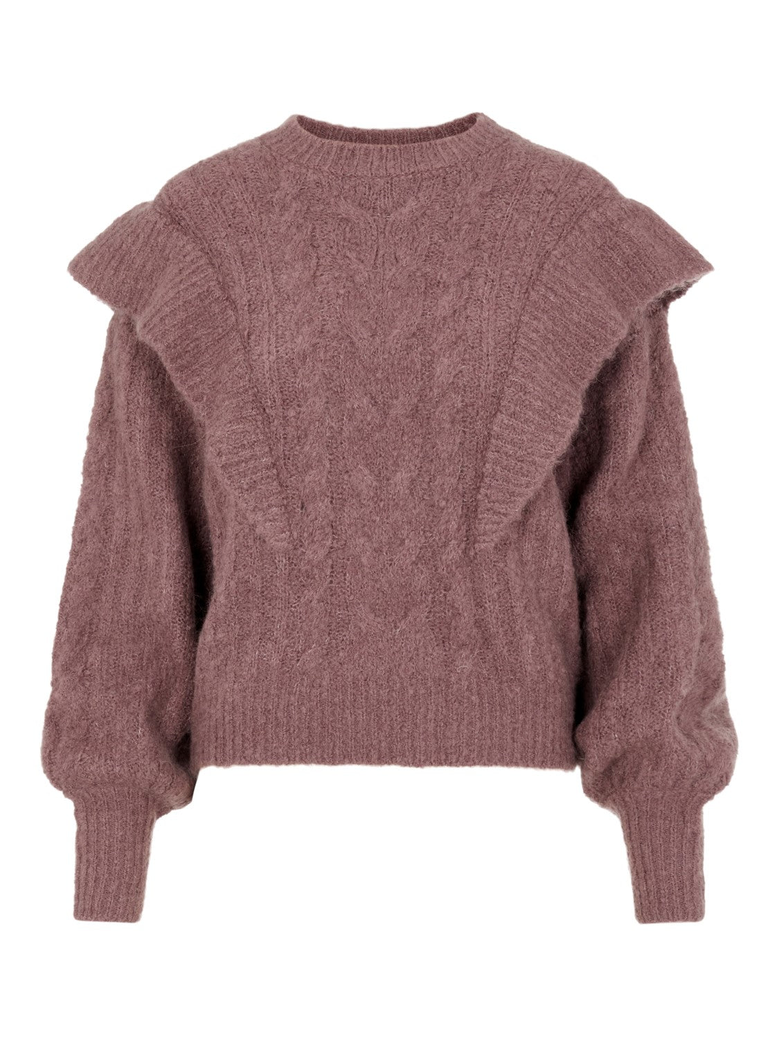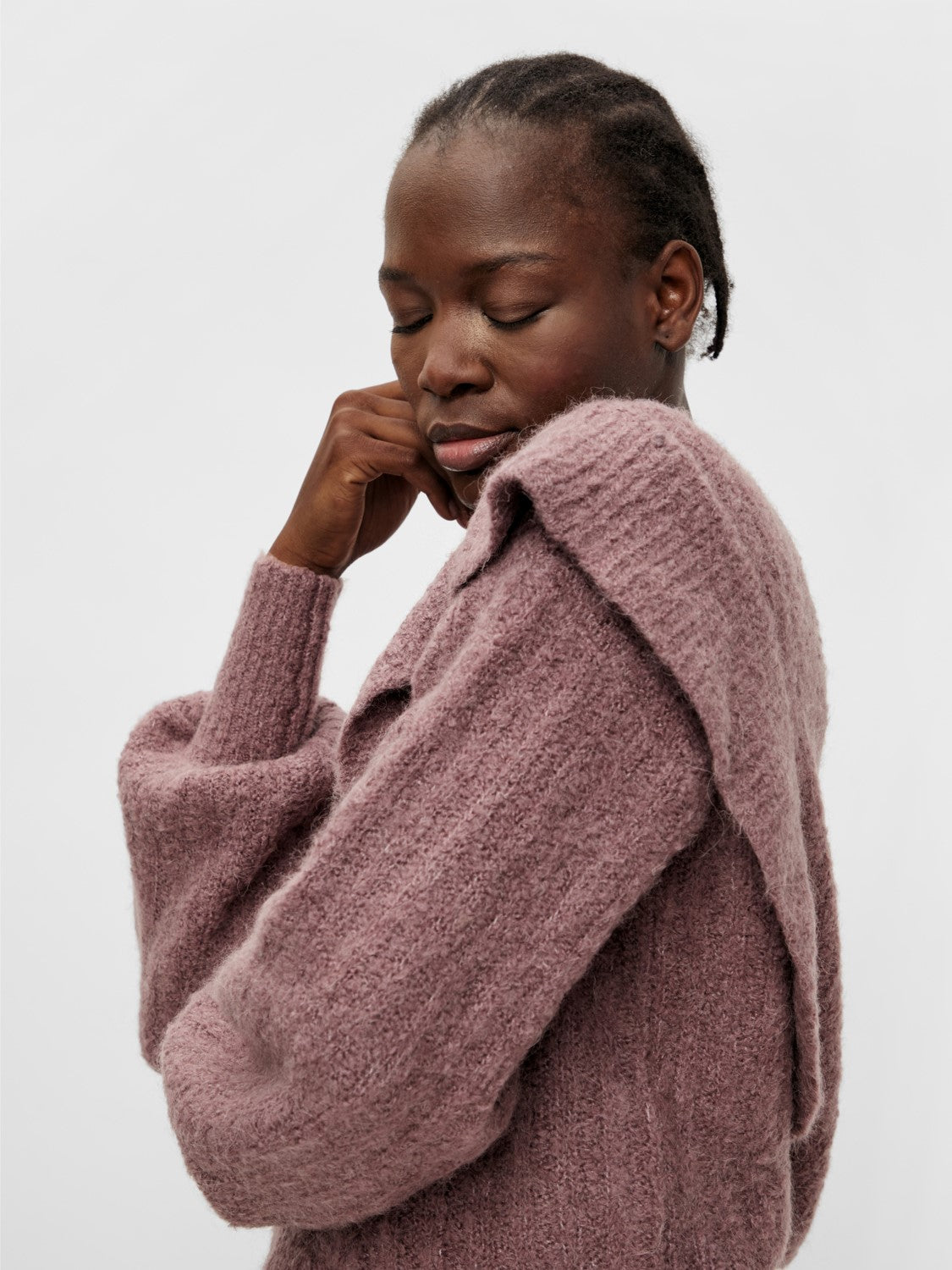 En herlig strikkegenser fra Obejct. Den har en nydelig melertfarge i lilla. Genseren har stilig detaljer foran og bak og møster i strikken. Normal på størrelsen.