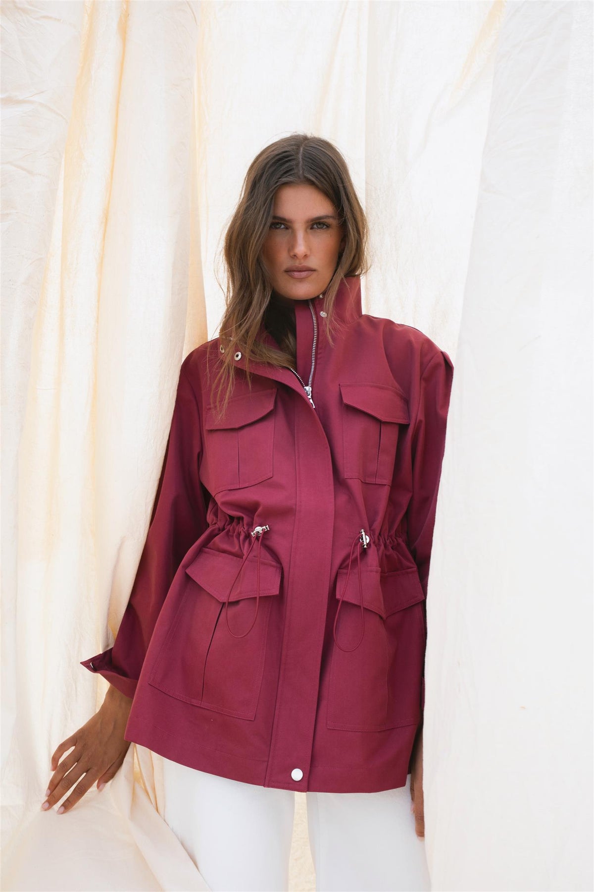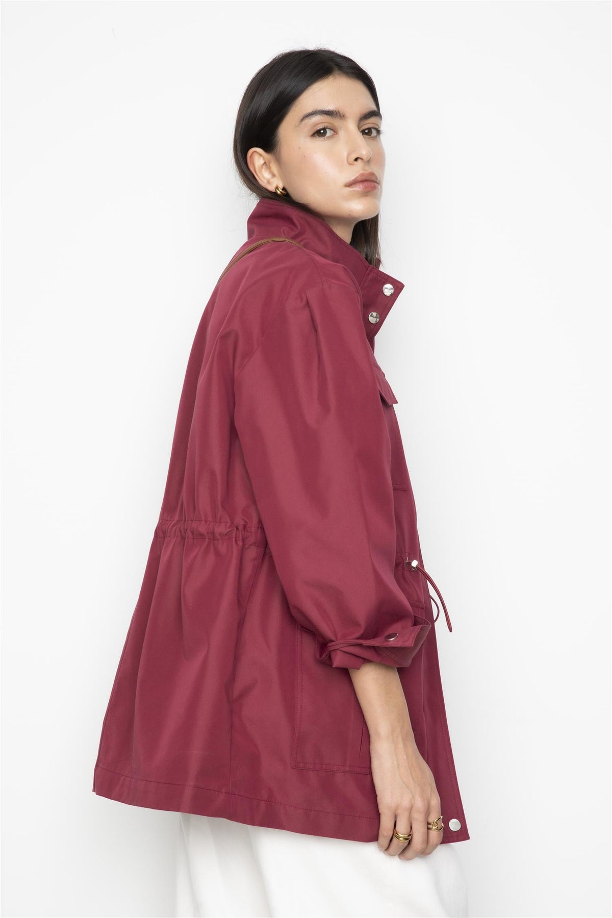 Jakken har en avslappet passform og justerbar snøring i midjen, slik at du enkelt kan tilpasse silhuetten etter ønske – enten du vil ha den mer innsvinget eller løsere. Praktiske klaffelommer, skjult glidelås og trykknapper gir et rent og gjennomført uttrykk. En bred leggdetalj over skuldrene tilfører et unikt og sofistikert preg.