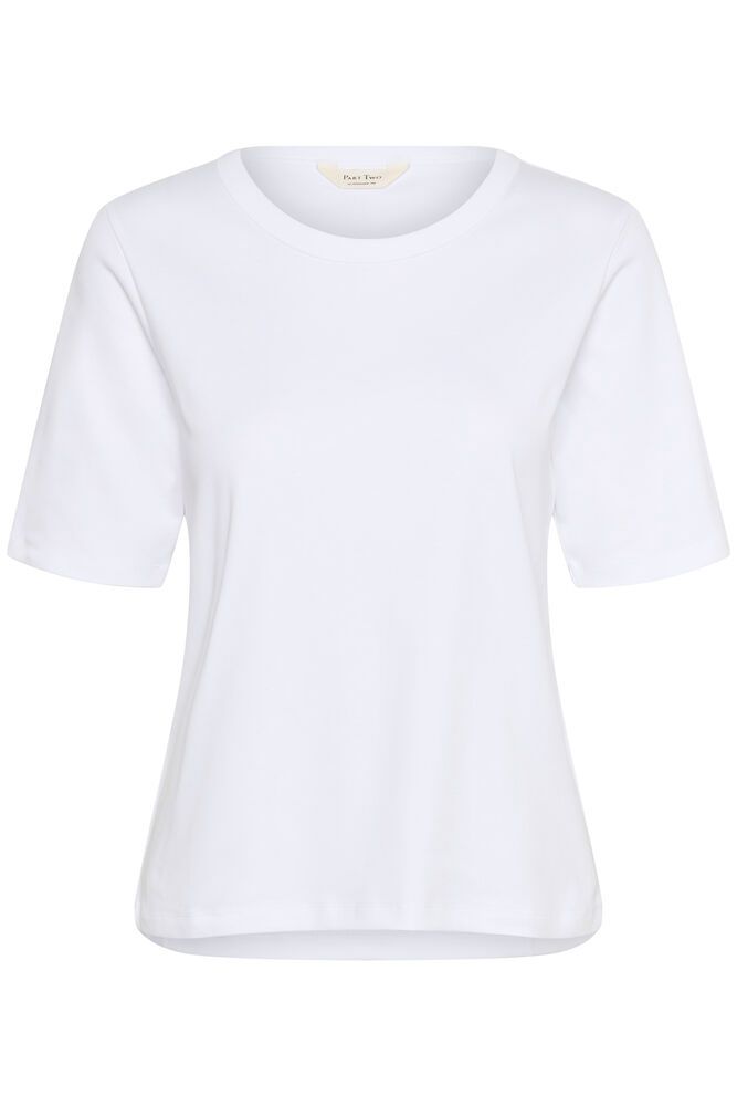 Denne klassiske og stilrene T-skjorten er laget i 100 % bomull som kjennes myk og behagelig mot huden. Den har en tidløs passform og et enkelt design som gjør den lett å style. Like fin for seg selv som under en blazer eller en strikkegenser.