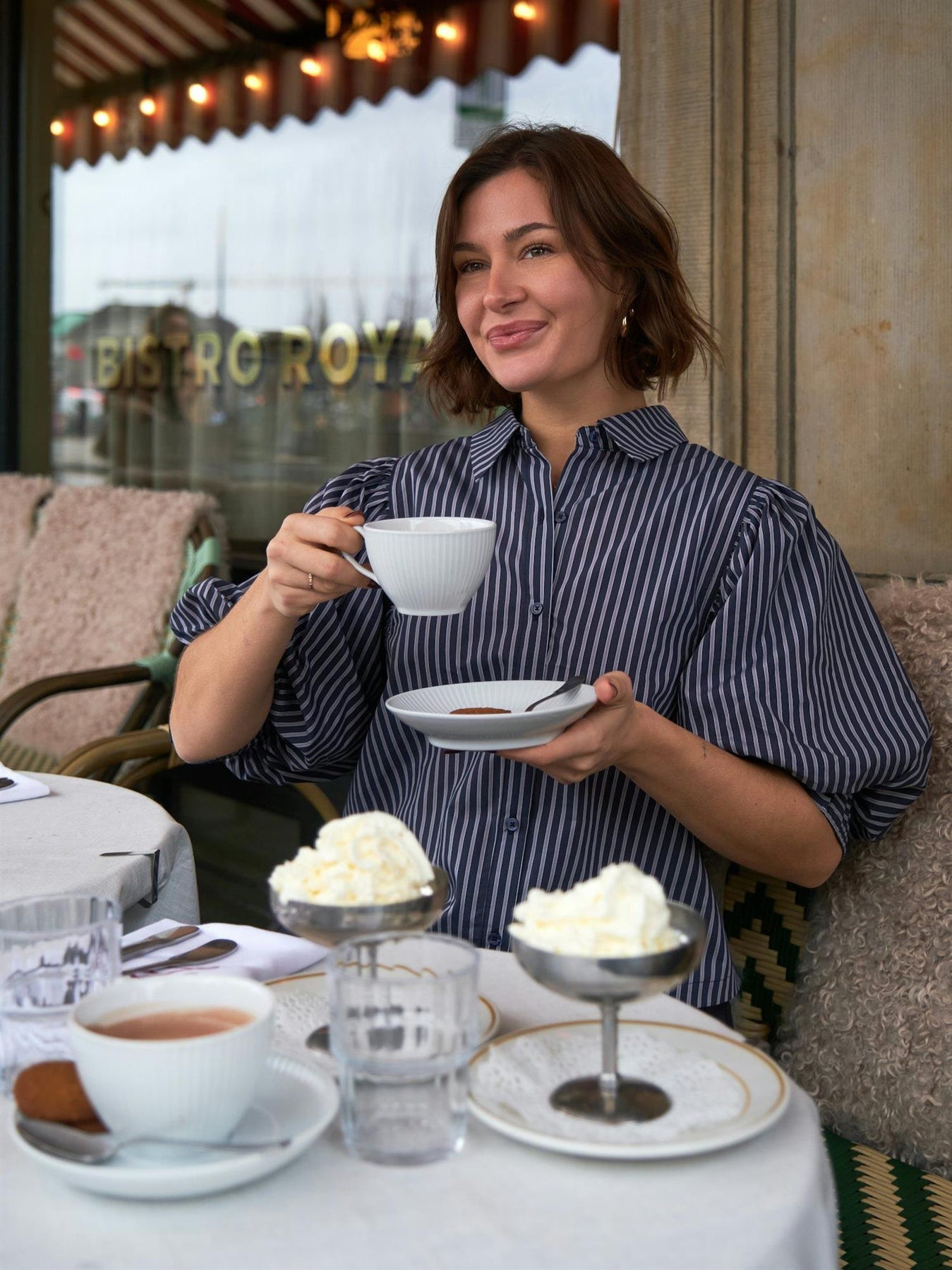 En veldig kul skjorte til fest og hverdags. Skjorta har puffede korte ermer og klassiske striper. En kort og vid passform.