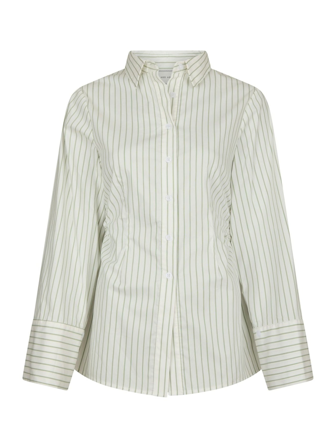 Stilig, figursydd skjorte med dekorativ rynkedetalj i siden. Modellen er 176 cm høy og bruker størrelse 36.