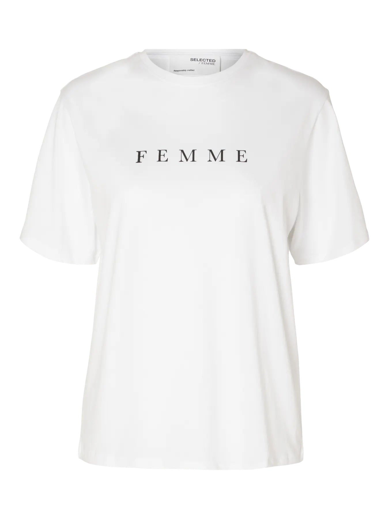 En basic T-skjorte med en liten "femme" logo i front. Vilja T-skjorte har en liten erm og god å myk å ha på.