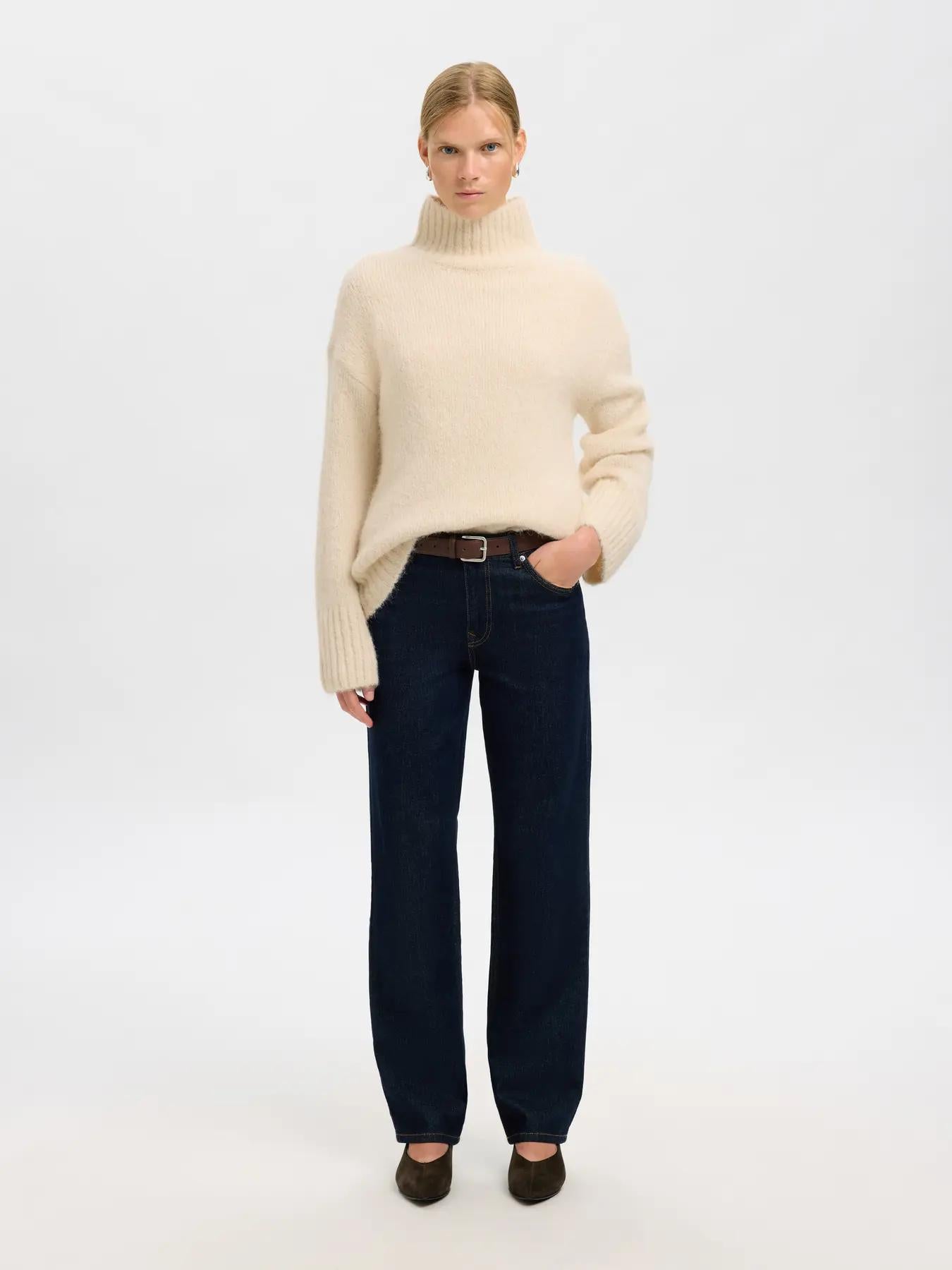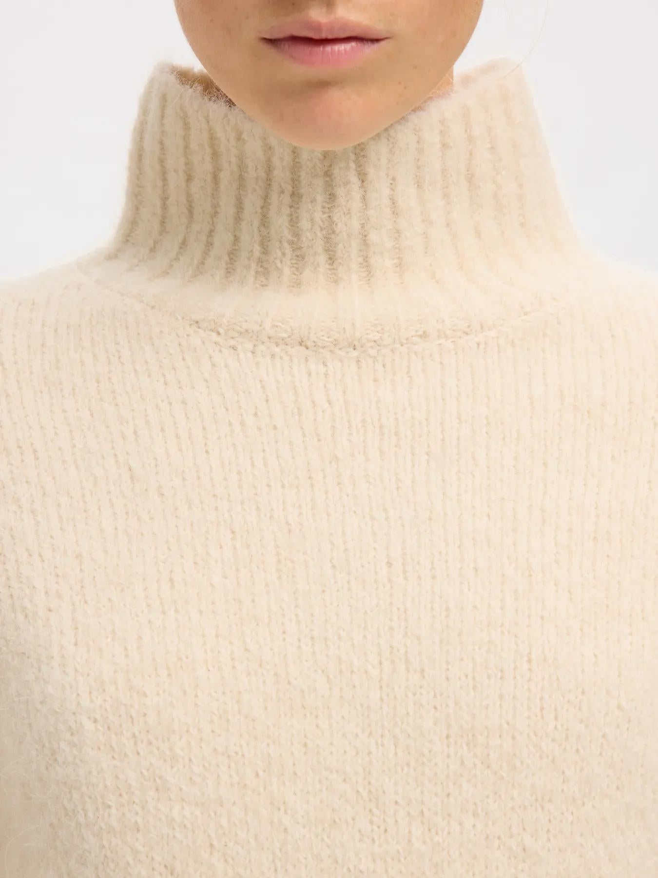 En tidløs og klassisk strikkegenser i en myk og varm alpakkablanding. Genseren har en avslappet passform med lange, rette ermer og en høy, ribbestrikket hals som gir et rent og elegant uttrykk. Perfekt både til hverdags og mer formelle anledninger.