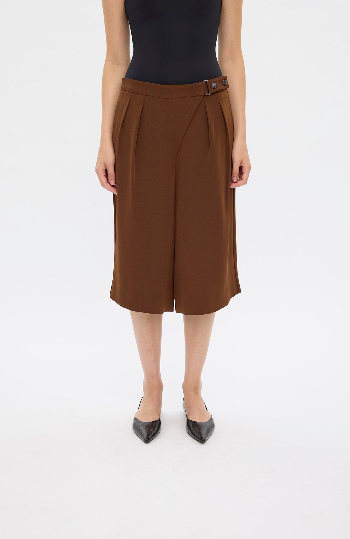 Lange shorts er trendy! Disse shortsene har en stilren og moderne finish og kan enkelt pyntes opp og ned. Asymmetrisk lukking i front og legg som gir en spennende touch til shortsen. Stikklommer og lommeklaffer bak. Høyt liv, benlengde til rett under knærne.