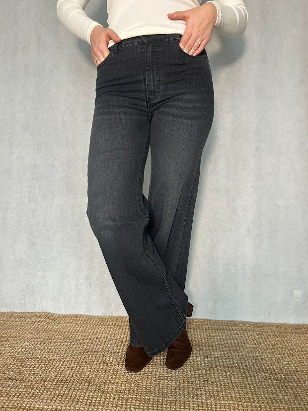 Palazzo fra Lois er en stor bestselger. En wide flare bukse du vil elske! Her kommer den i den myke og komfortable Jossie night kvaliteten. Den er høy på livet, sitter godt over hoftene og bak. Bena blir vide fra lårene og ned. Kul, trendy og anvendelig bukse. Normal på størrelse.