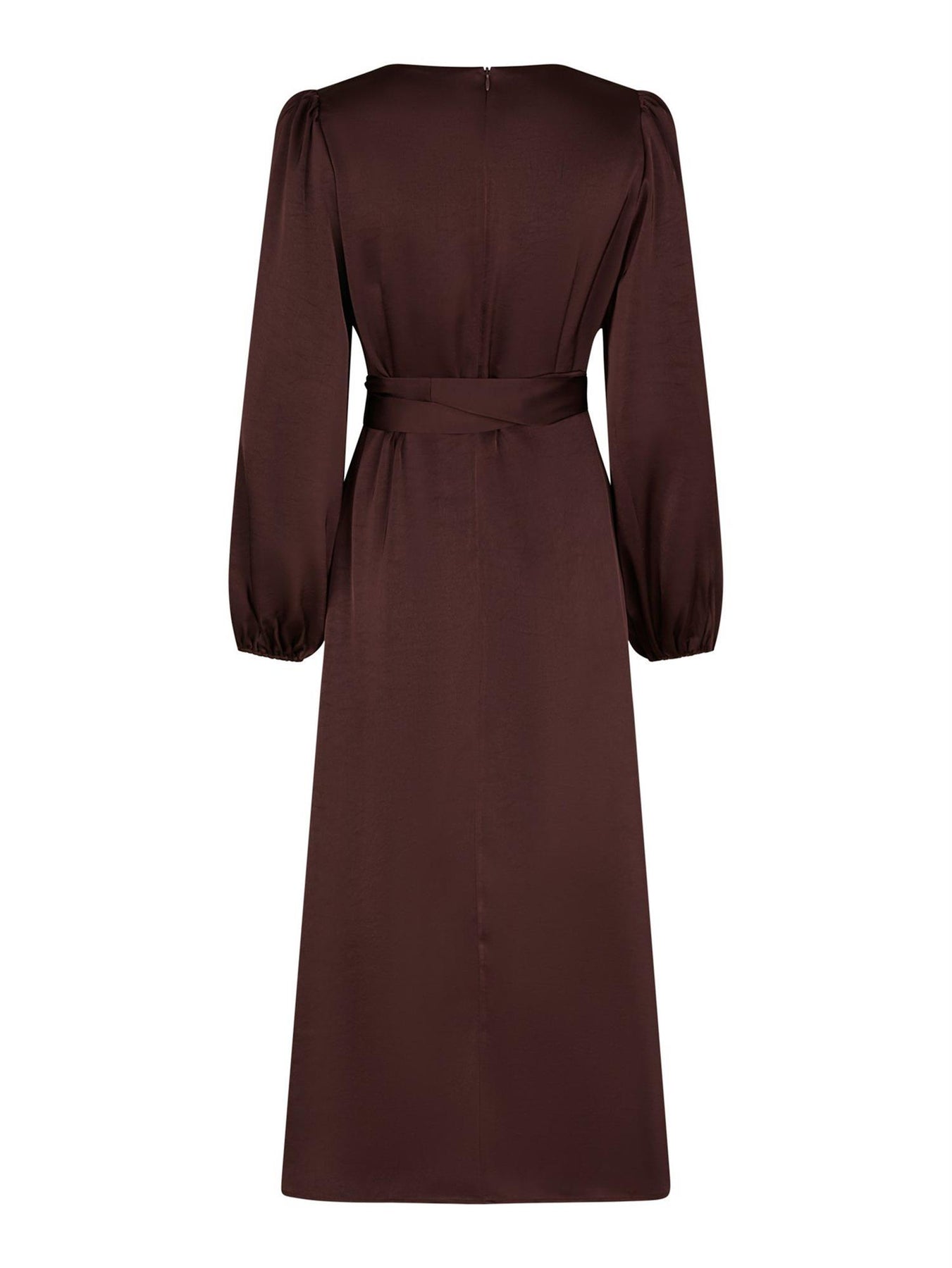 En vakker og feminin omslagskjole, perfekt til spesielle anledninger! Kommer i en sateng kvalitet. Ermene er lange og vide. Kjolen knytes i livet. Midilengde.