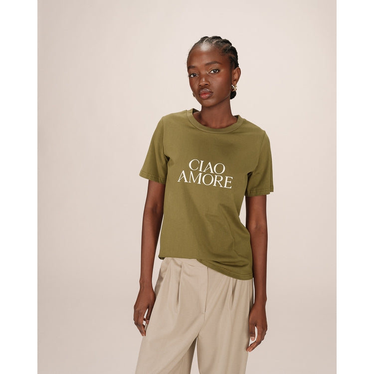 "Ciao Amore"! Herlig t-skjorte i en god basefarge, gir det lille ekstra til antrekket.