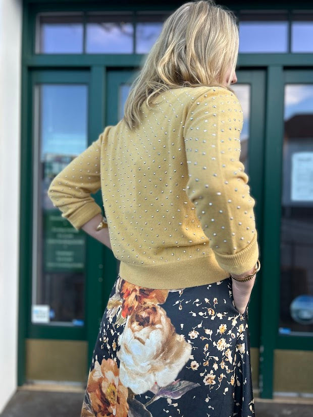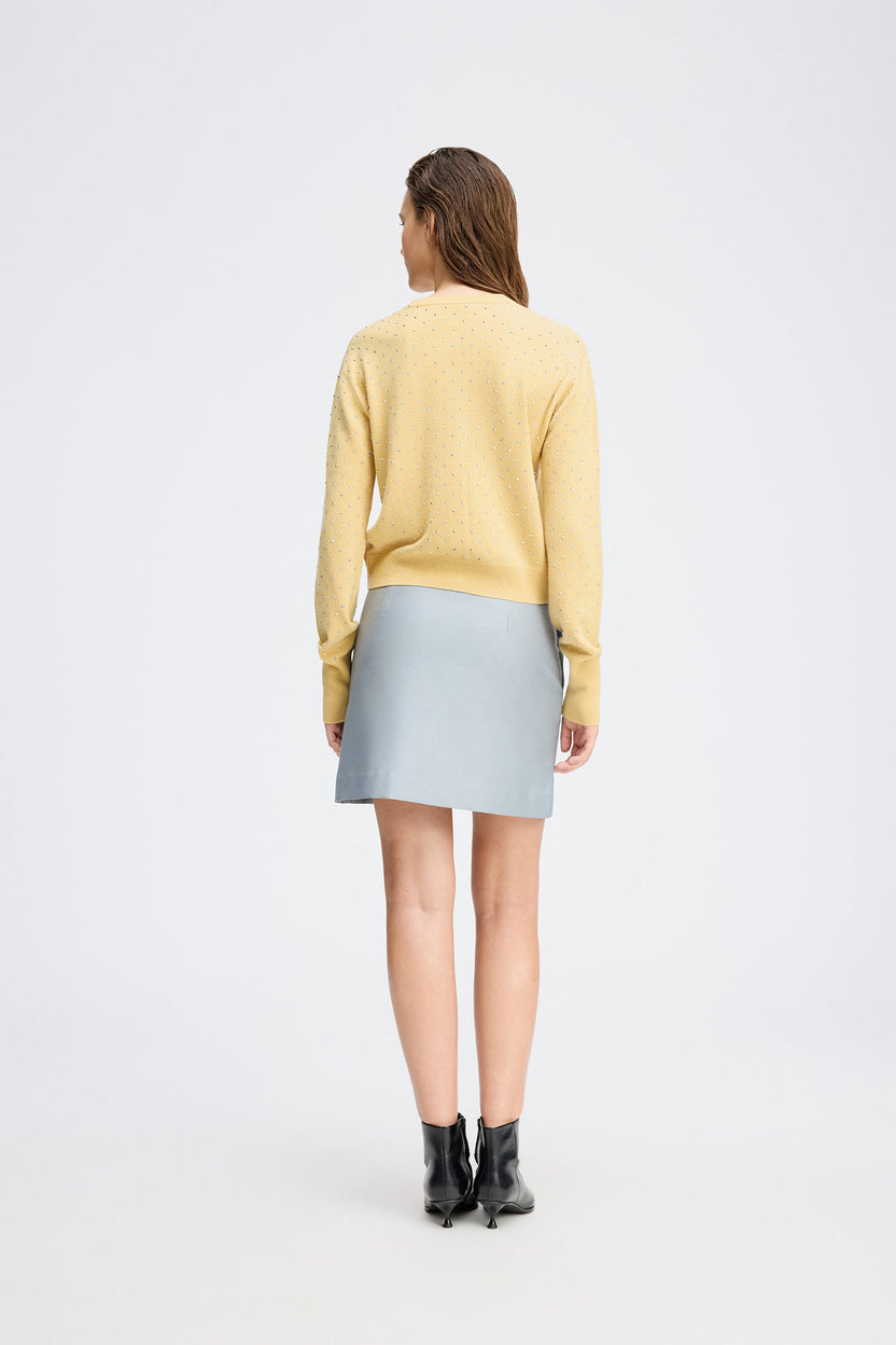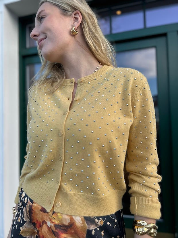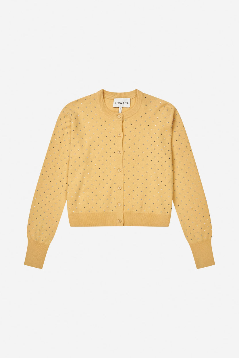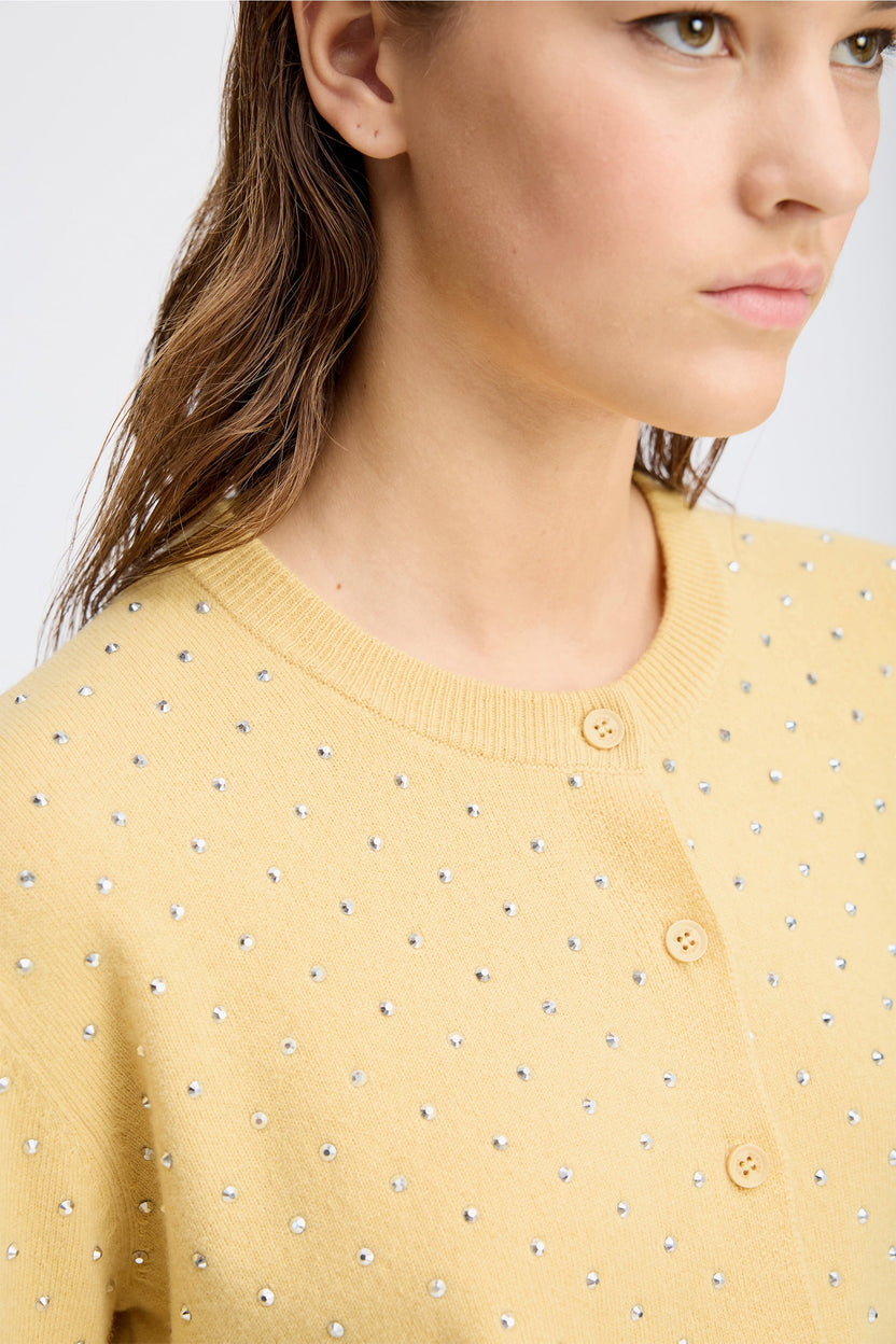 Vakker og myk ullcardigan med elegante sølvfargede nagler. Perfekt til et pyntet festantrekk, eller til å heve hverdagsantrekket. Cardiganen har en klassisk rund hals, lange ermer og knappelukking foran.