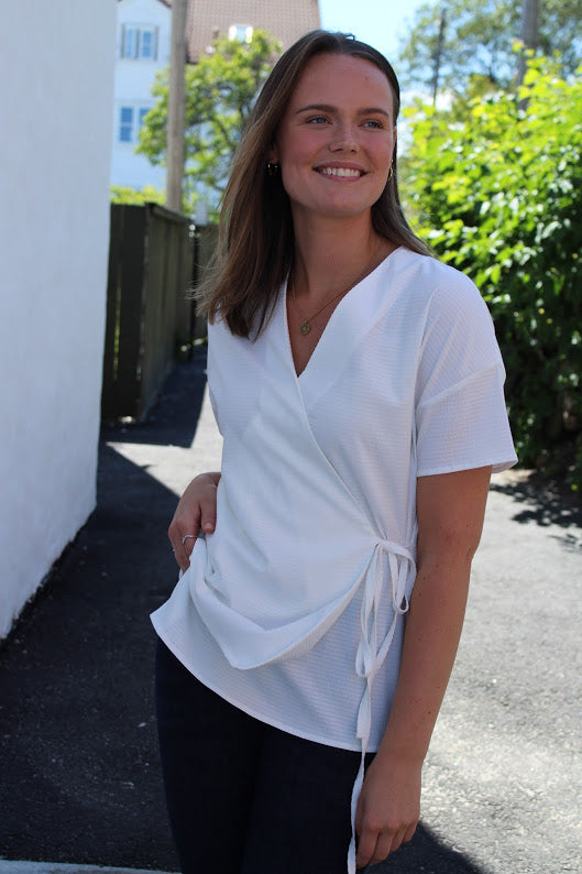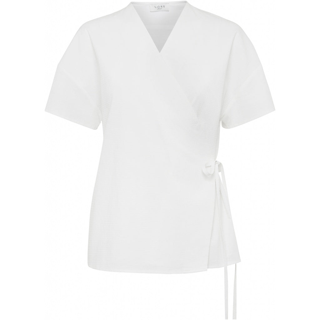 Nydelig bluse fra Norr i en deilig bomulls kvalitet med struktur. Feminin, klassisk snitt med omslag og korte ermer.